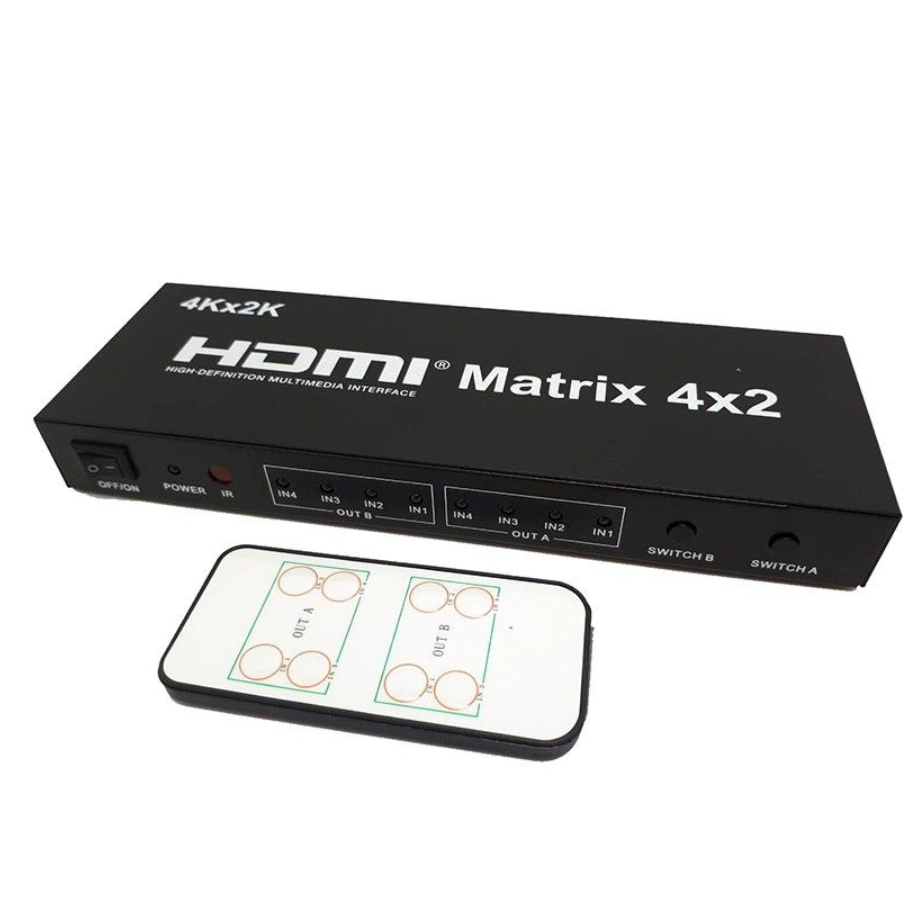 HDMI Matrix 4X2 Switch Splitter HIFI Matrix 4 in 2 out with Remote Control Audio Supports HDMI V1.4/3D/4Kx2K