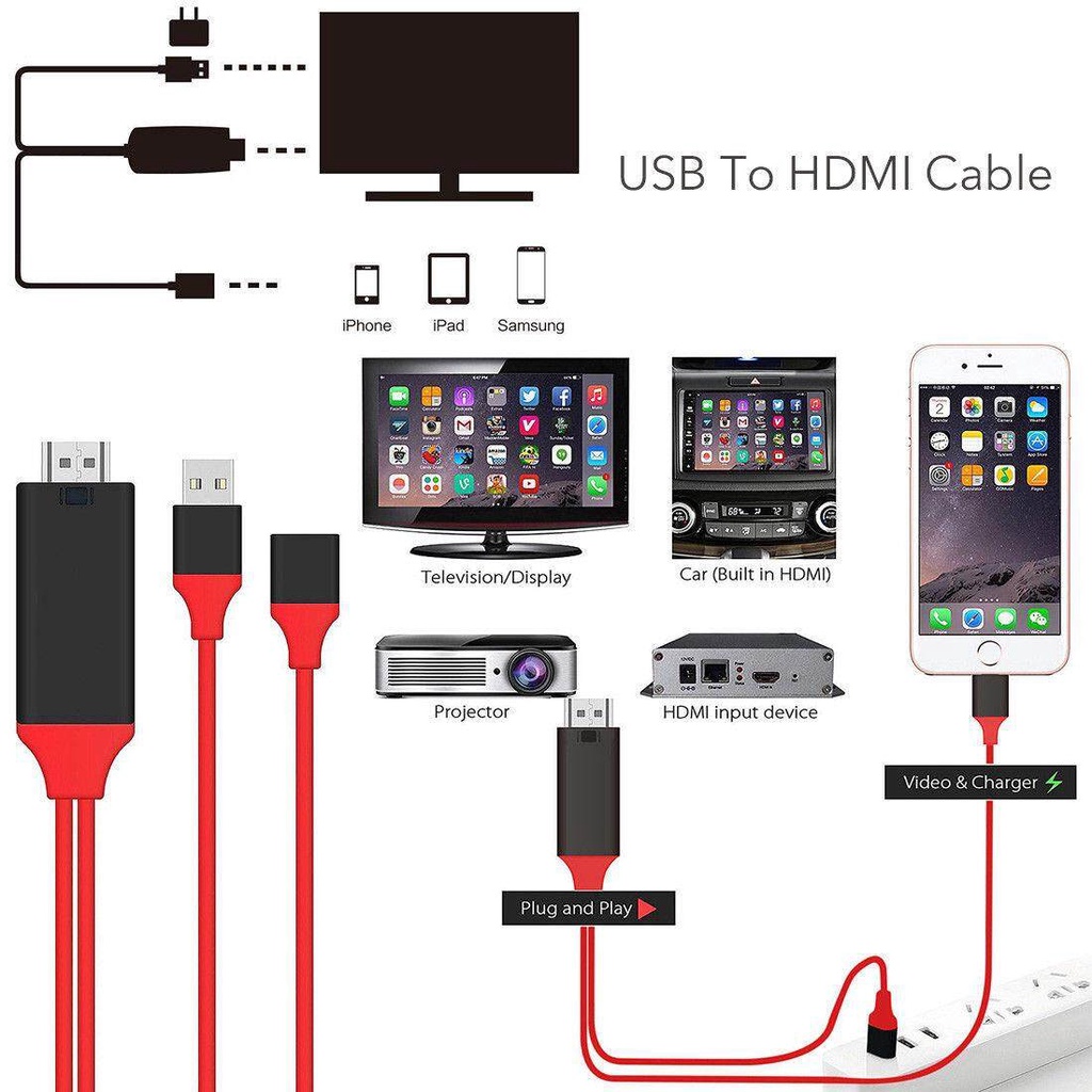 HDTV CABLE USB Female to HDMI Cable Display Dongle 1080P Airplay Mirroring Plug and Play Same Screen USB Power