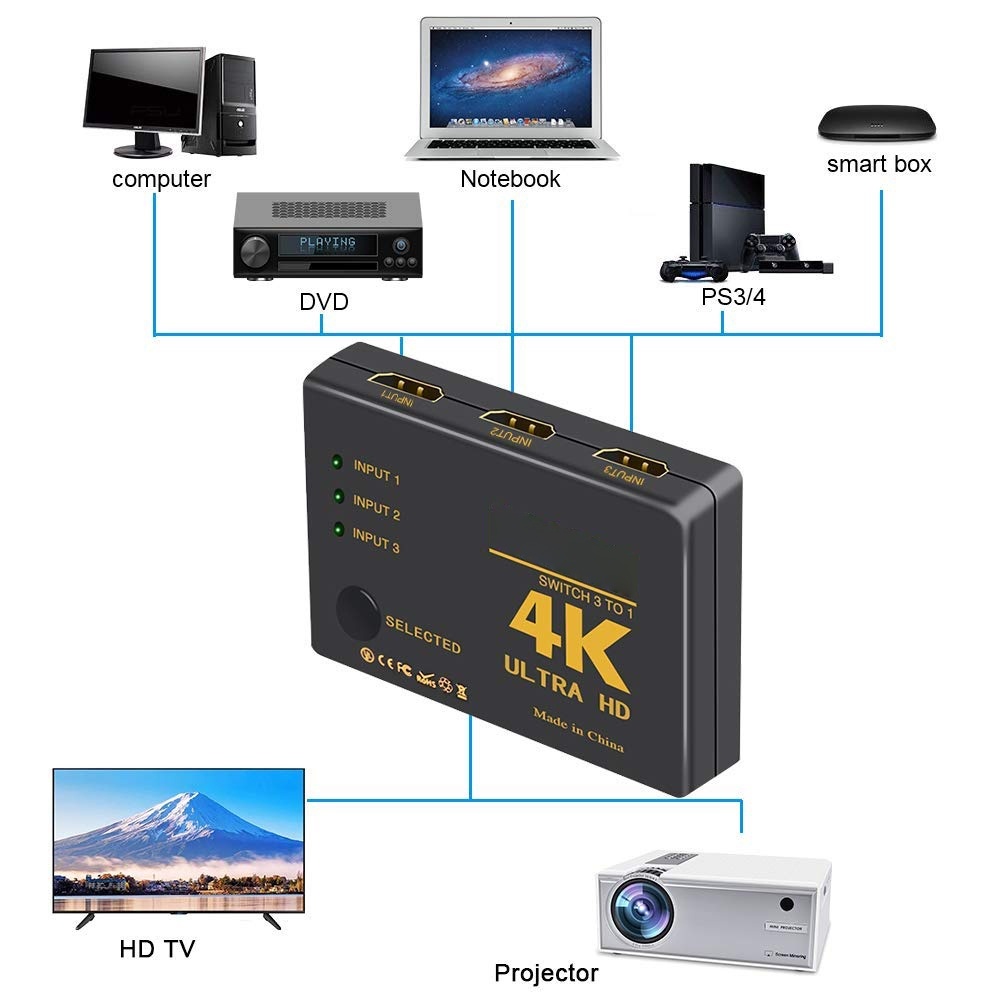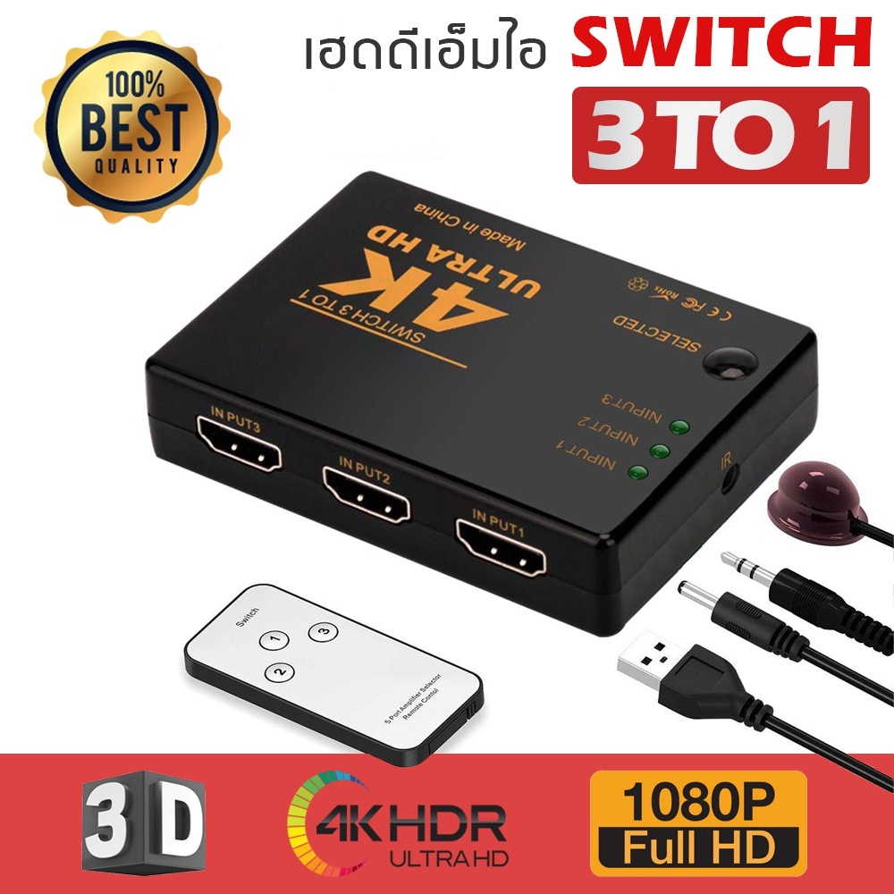 HDTV switch 3x1 SELECTED full hd 3d 1080p With remote