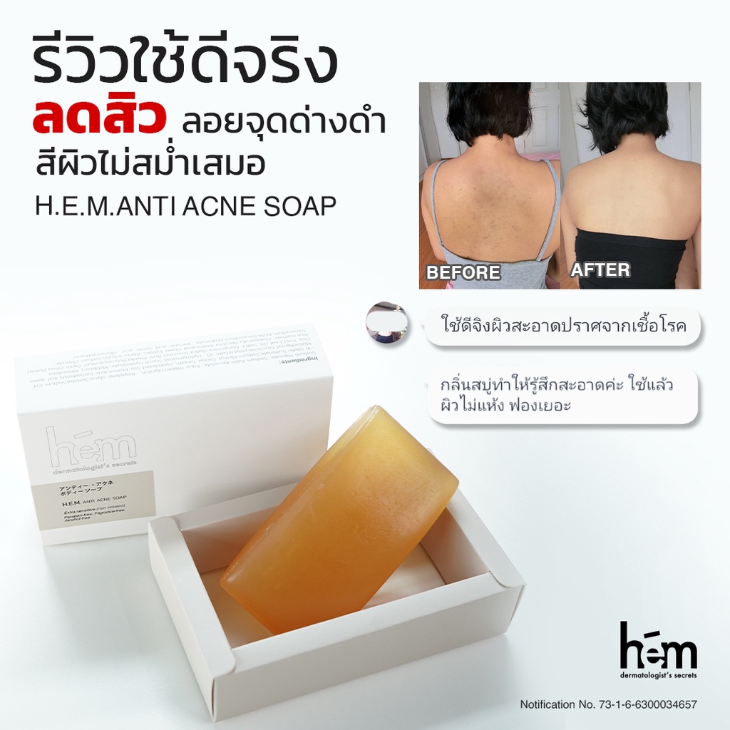 HEM Anti-Acne Soap 120g. เอช.อี.เอ็ม.แอนตี้ แอคเน่ ซอฟ 120กรัม