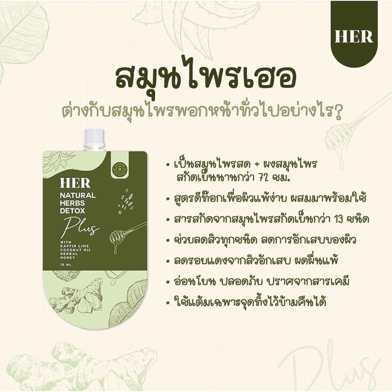HER Natural Herbs Detox Mask เฮอร์ สมุนไพรมาส์กหน้าแบบซอง ขนาด 15 ml. รูขุมขนกระชับ หน้าเรียบเนียน
