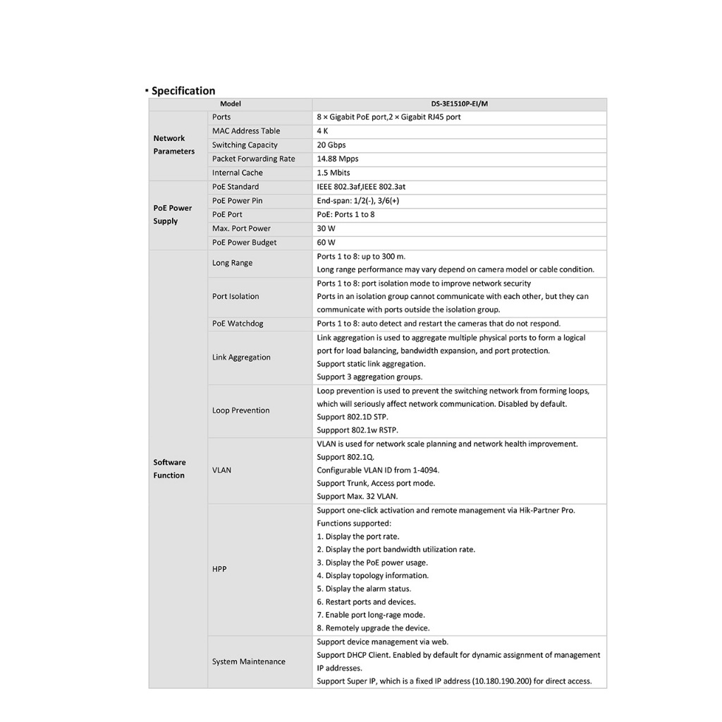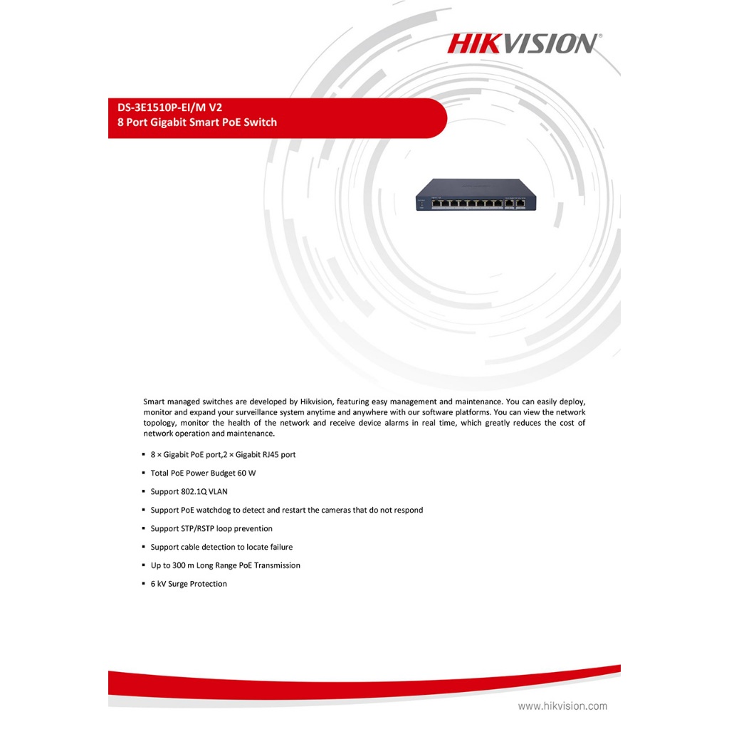 HIKVISION DS-3E1510P-EI/M 8 Port Gigabit Smart POE Switch 65W BY BILLIONAIRE SECURETECH