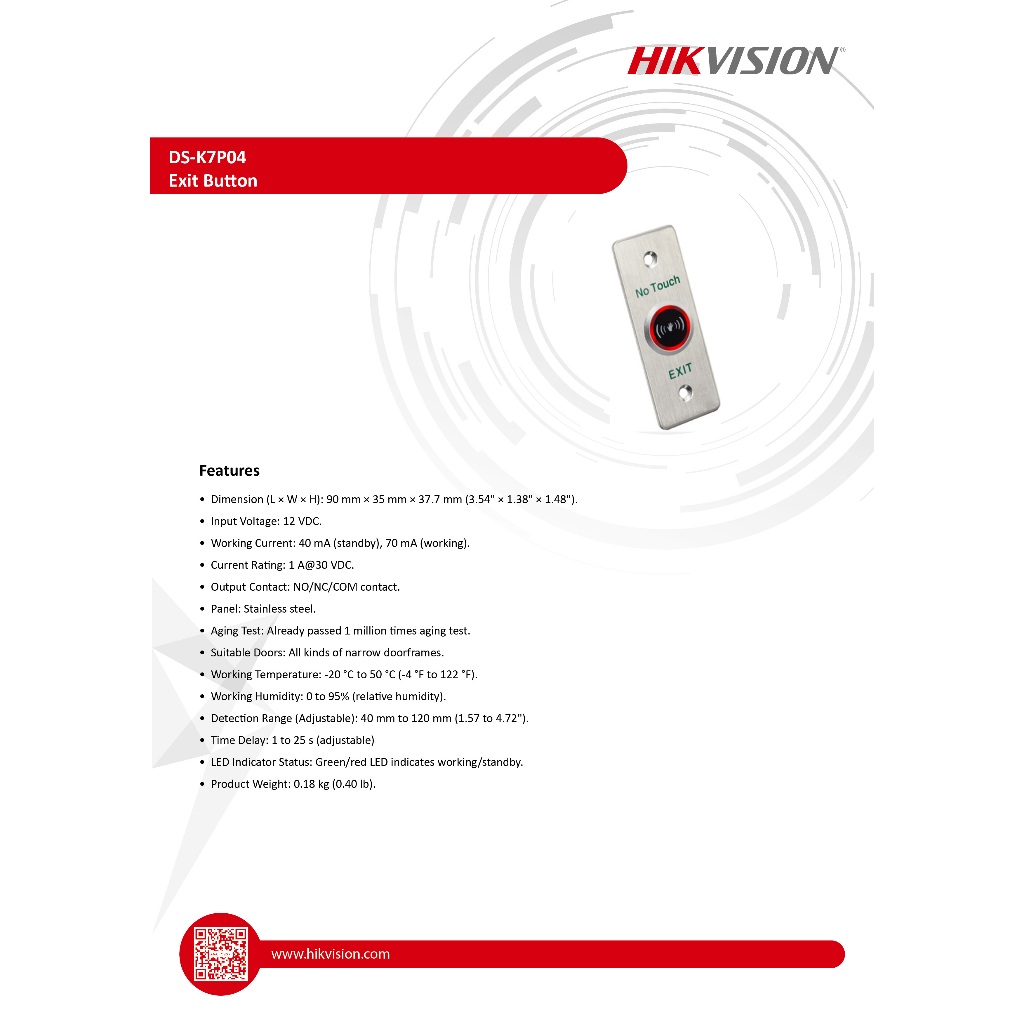 HIKVISION DS-K7P04 : No Touch Exit & Emergency Button BY BILLIONAIRE SECURETECH