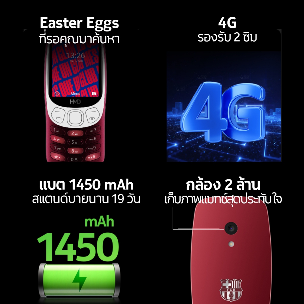 HMD Barca 3210 4G (64/128) โทรศัพท์มือถือปุ่มกด 2 ซิม ธีม Barca & Ringtone (รับประกันศูนย์ไทย 1 ปี)