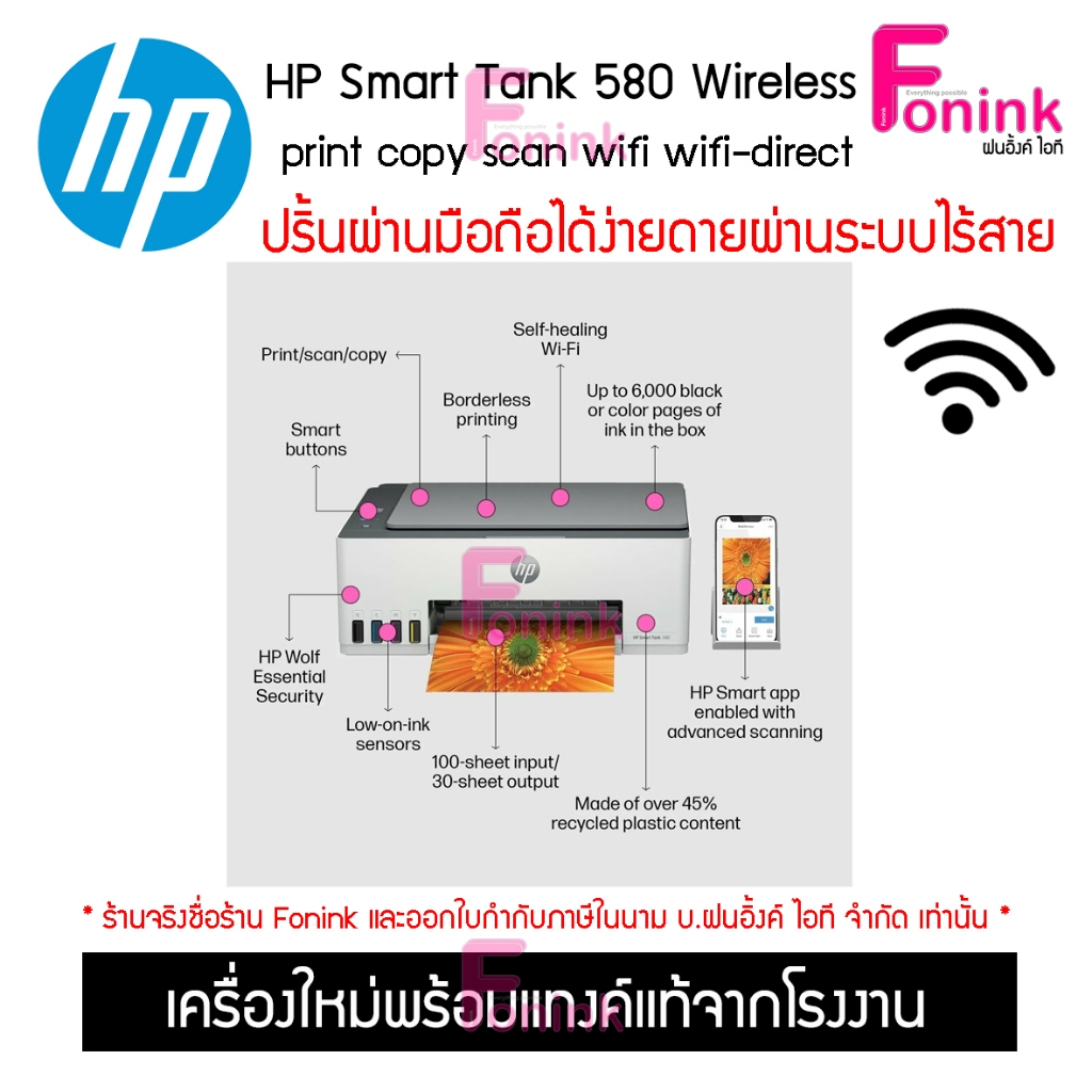 HP 580 Ink Tank Printer Wireless All-in-One (Print/Copy/Scan/Wifi)