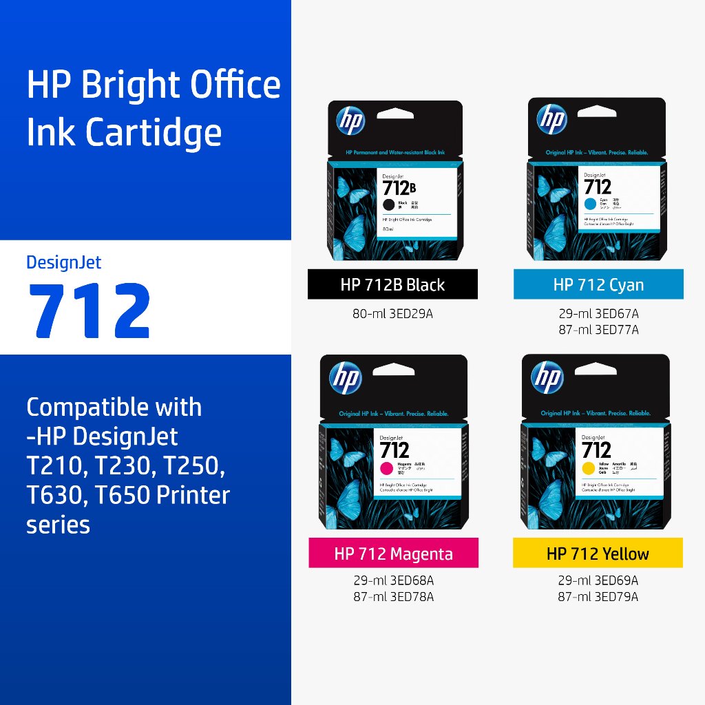 [ส่งด่วน] HP 712 / 712B Black/Tri-Color (ตลับหมึกสี/สีดำ) Original Ink Design Jet Ink Cartridge