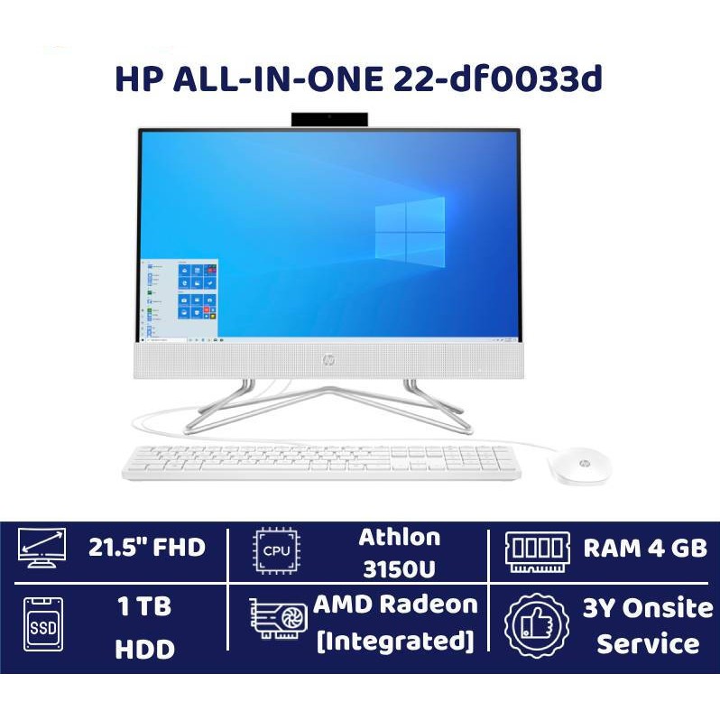 HP All In One PC HP 22-df0033d AMD Athlon 3150U/4GB/1TB HDD/21.5"/Radeon Graphics/Windows 10 Home / 3Y