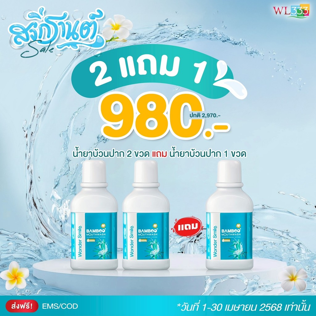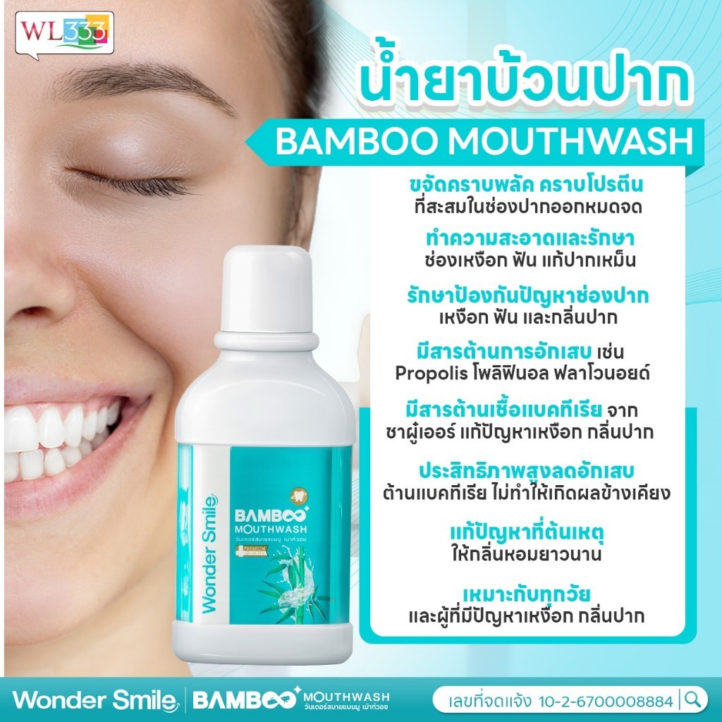(ตัวแทน) น้ำยาบ้วนปาก Wonder Smile Bamboo Mouthwash 300 ml. สะอาดสดชื่น อ่อนโยนต่อสุขภาพช่องปาก