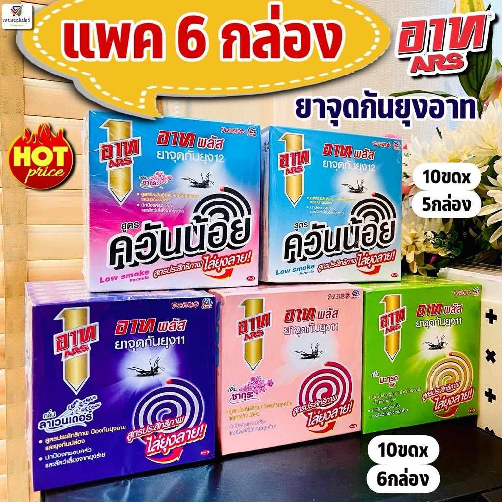(แพต 6 กล่อง) ยาจุดกันยุงอาท พลัส / ควันน้อย สูตรประสิทธิภาพไล่ยุงลาย (120-150 กรัม) แพคละ 10 ขด Ars Mosquito