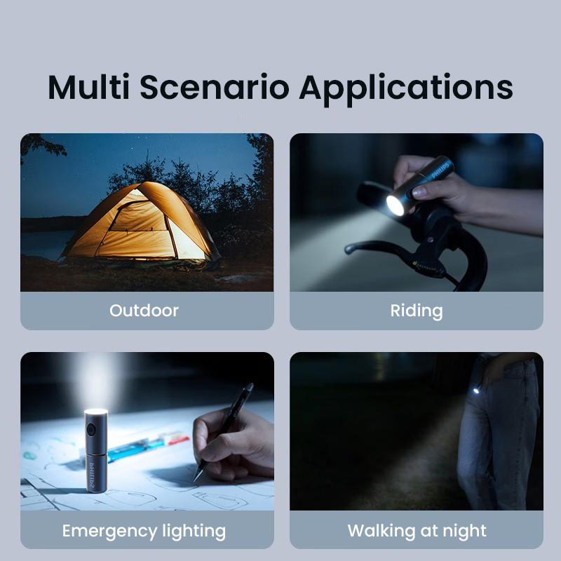 Philips EDC ไฟฉาย SFL1126 ไฟ LED 7 โหมดสัญญาณการชาร์จ USB ไฟฉายไฟฟ้าขนาดเล็ก