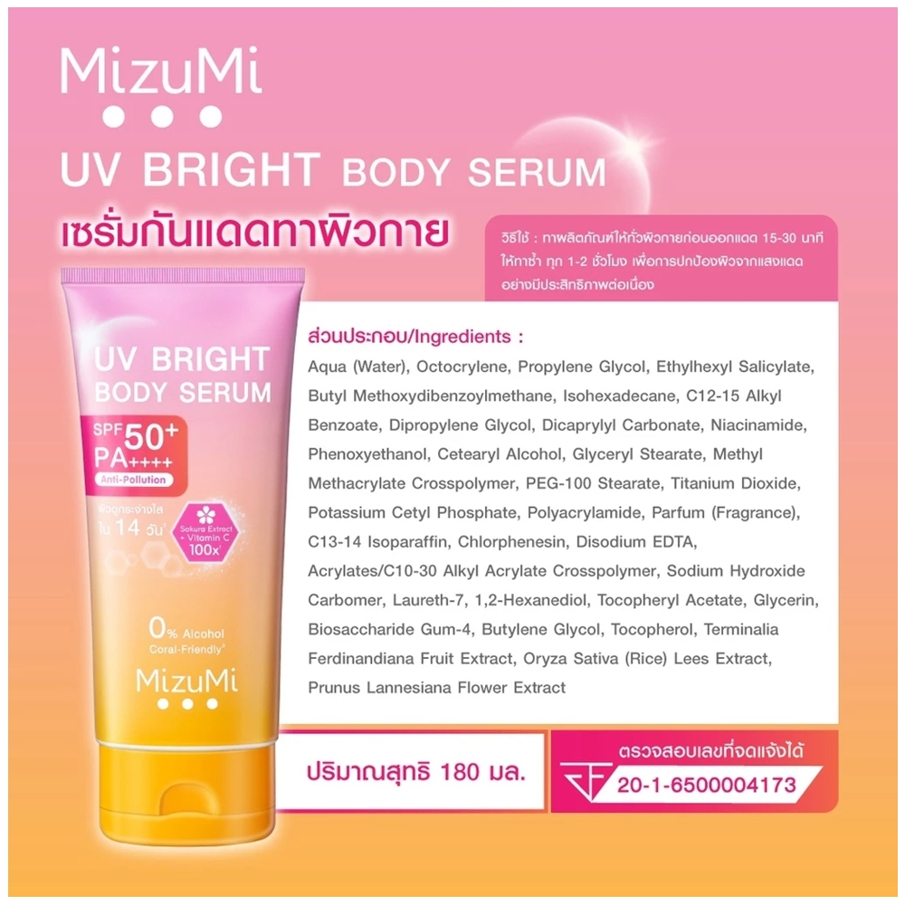 *[ซื้อ 1 แถม 1] Mizumi UV Bright Body Serum SPF50+ PA++++ 180 ml. มิซึมิ ยูวี ไบรท์ บอดี้ เซรั่ม เอสพีเอฟ 50+ พีเอ++++