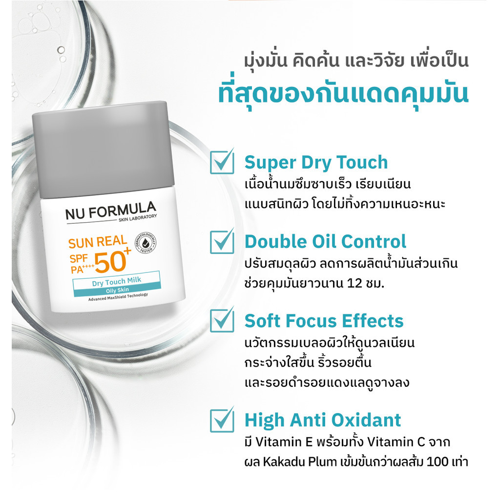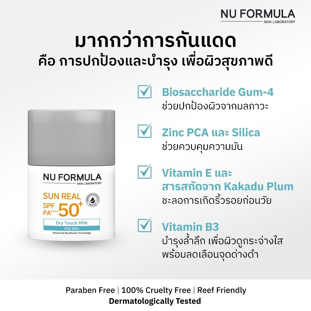 🔥แท้/ถูกที่สุด/ไลฟ์ทุกวัน🔥(1ชิ้น) Nu Formula Sun Real SPF50+ PA++++ Dry Touch Milk 15g กันแดด นู ฟอร์มูล่า เนื้อน้ำนม