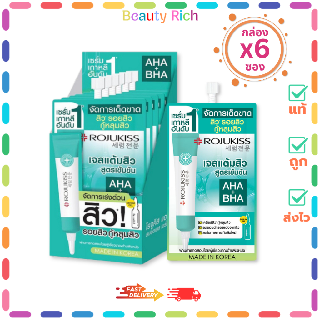 (กล่อง 6 ซอง) Rojukiss Acne Spotless Serum Gel - โรจูคิส แอคเน่ สปอตเลส เซรั่ม เจล (6 ml.)