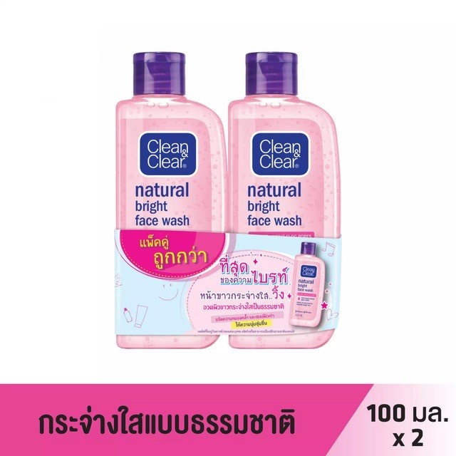คลีนแอนด์เคลียร์ โฟมล้างหน้า เนเชอรัลไบรท์เฟซวอช 100 มล. แพ็คคู่ (2 ชิ้น) Clean&Clear Natural Bright Face Wash 100ml.X2