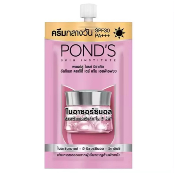 (1 ซอง) Pond's พอนด์ส ไบรท์ มิราเคิล อัลติเมท คลาริตี้เดย์ครีม SPF30