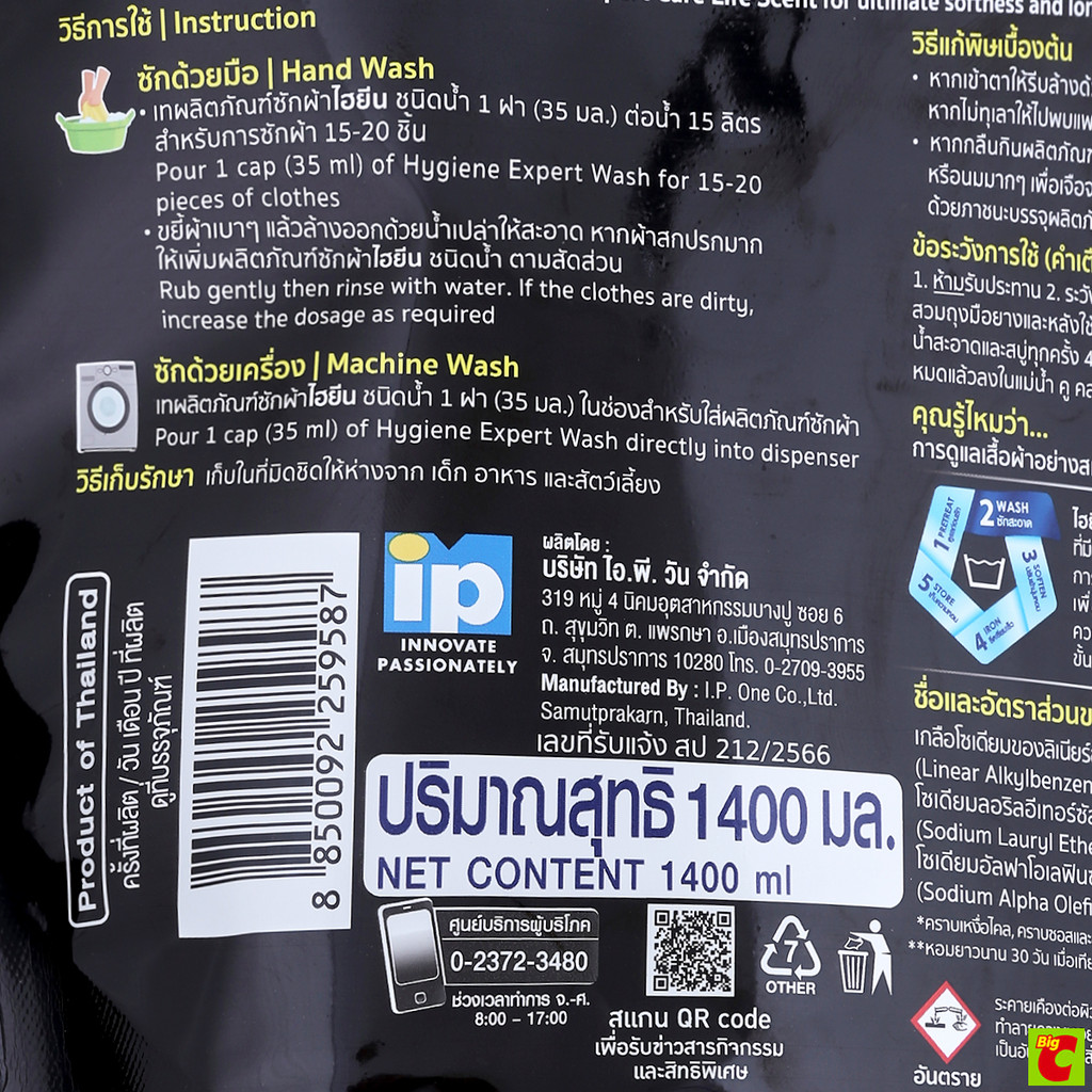 ไฮยีน เอ็กซ์เพิร์ท วอช น้ำยาซักผ้า กลิ่นพีโอนี บลูม 1400 มล.