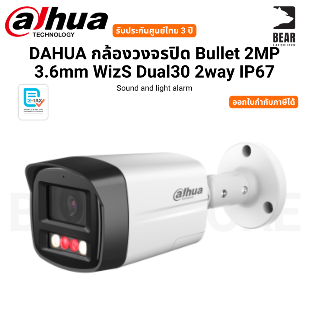 DAHUA กล้องวงจรปิด Bullet 2MP 3.6mm WizS Dual30 2way IP67 Sound and light alarm รับประกันศูนย์ไทย 3 ปี
