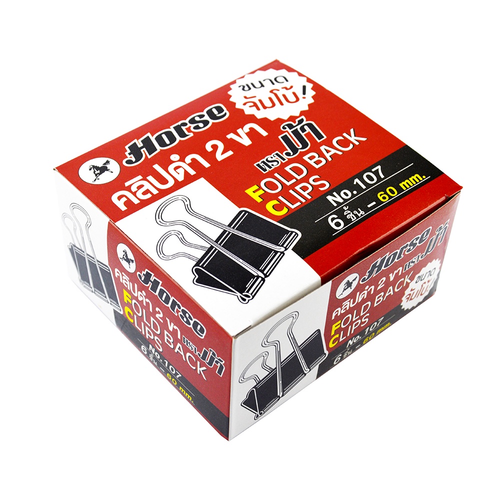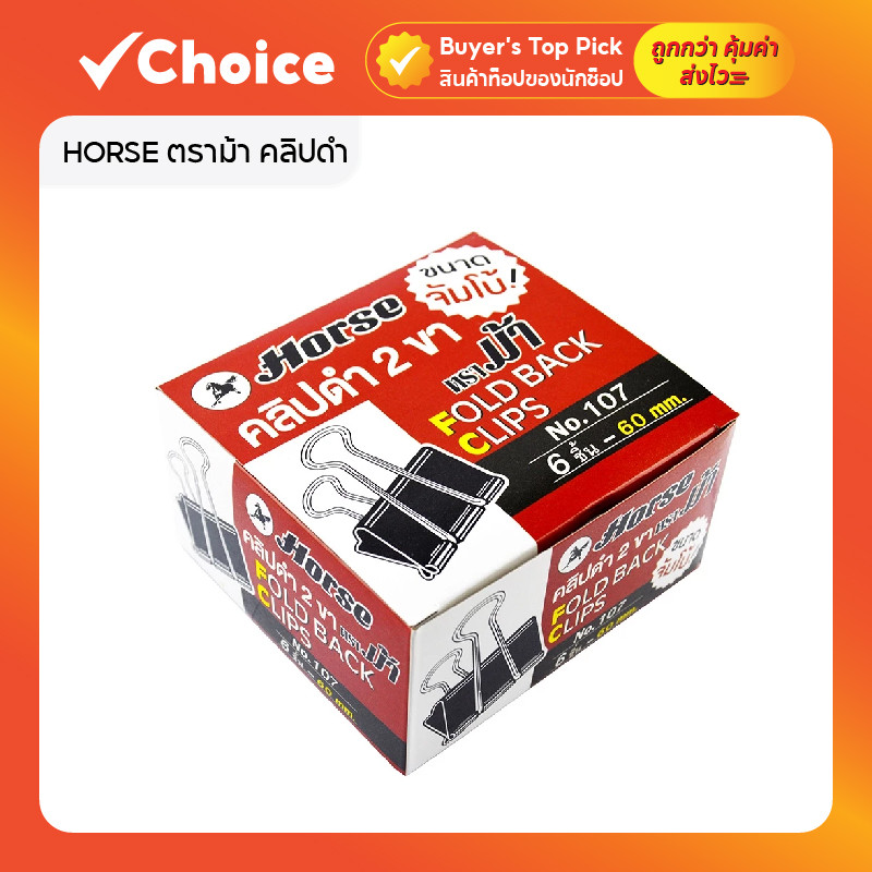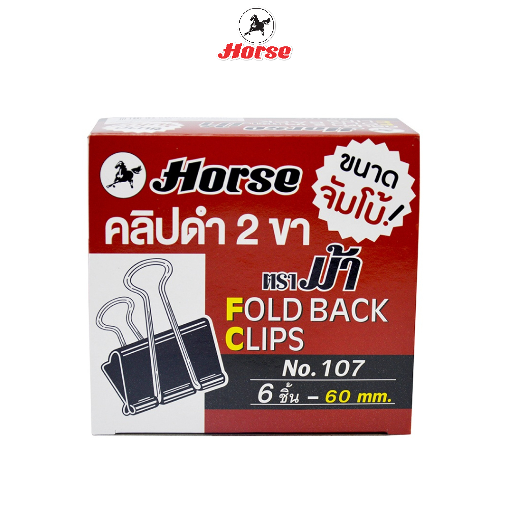 HORSE ตราม้า คลิปดำ 2 ขา รุ่น H-107 ขนาดจัมโบ้ 60 มม. บรรจุ 6 ตัว/กล่อง