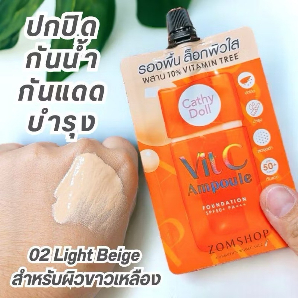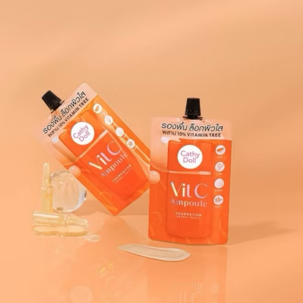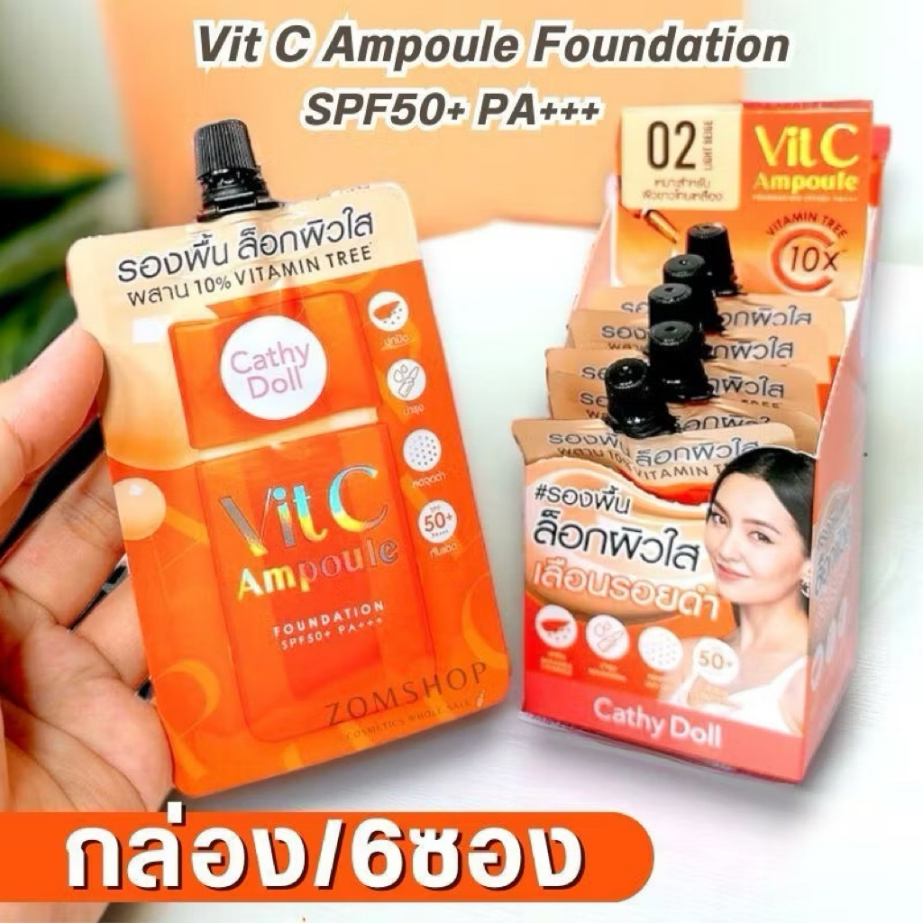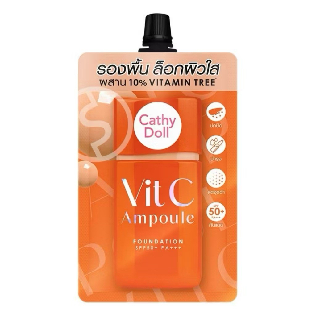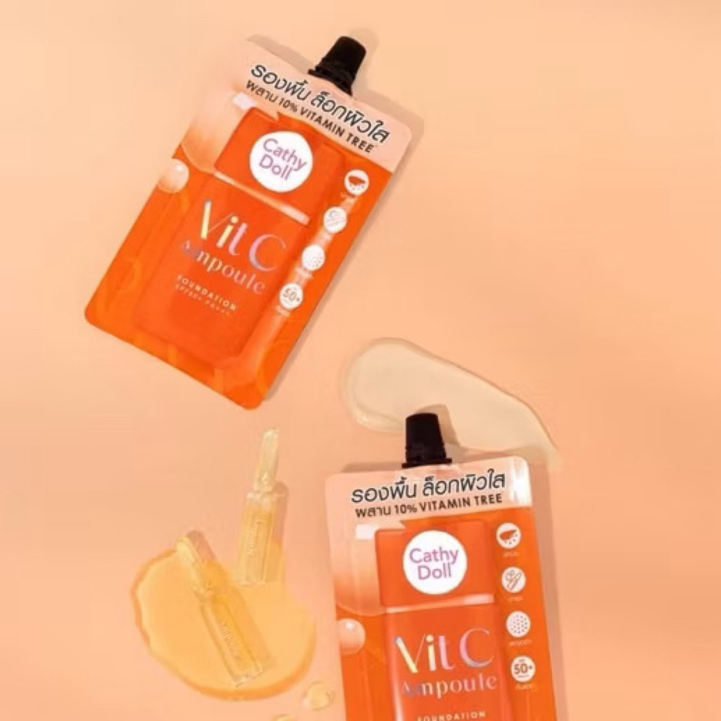 Cathy Doll รองพื้นวิตซีแอมพูลฟาวเดชั่น SPF50+PA+++ แบบซอง 6g. **เเบบซอง**