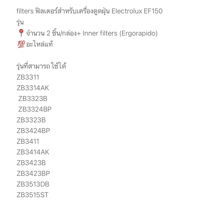 พร้อมส่ง Filters ฟิลเตอร์สำหรับเครื่องดูดฝุ่น Electrolux รุ่น ZB3311 ZB3314AK ZB3323B ZB3324BP ZB3424BP ZB3423B ZB3411