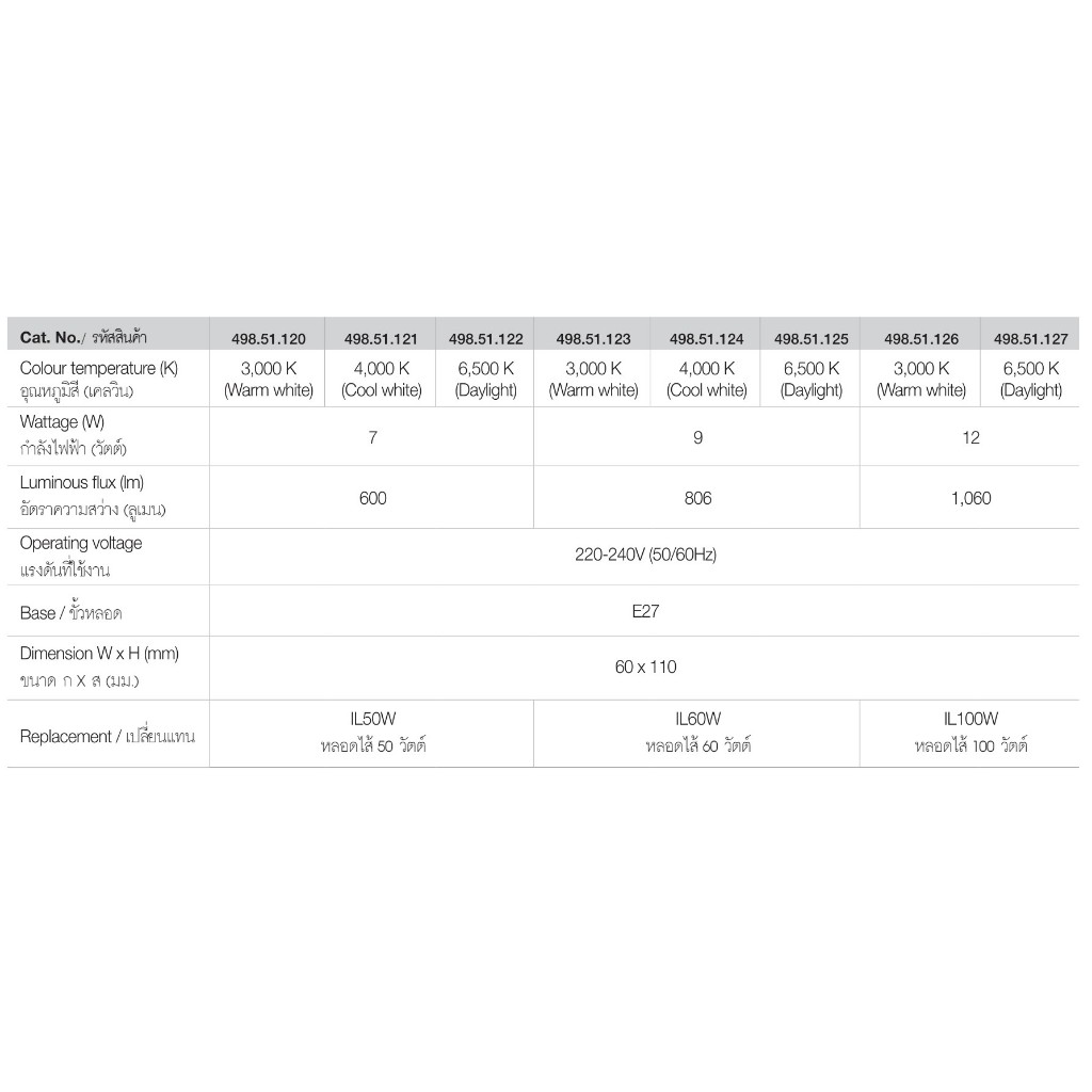 HAFELE หลอดไฟแอลอีดี A60 ขั้วหลอด E27 7-12 วัตต์