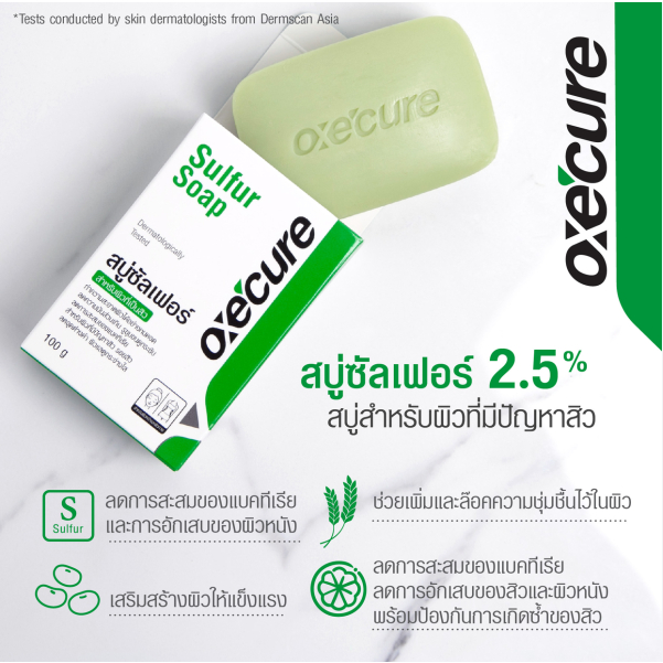 (30g) Oxecure Sulfur Soap อ๊อกซี เคียว ซัลเฟอร์ โซพ สบู่ซัลเฟอร์ 2.5% [0112]