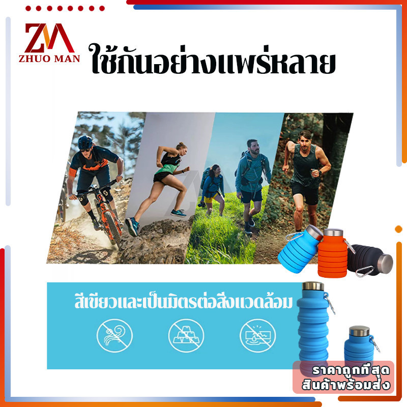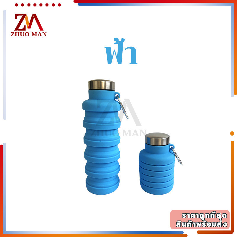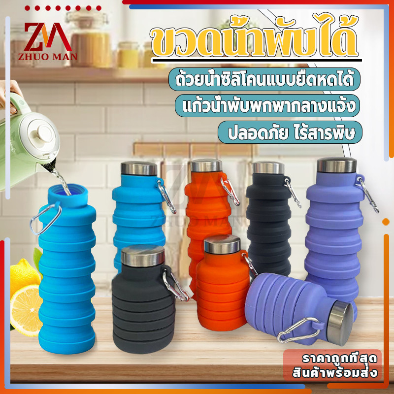 ขวดน้ำพับได้ กระบอกน้ำ500MLขวดกีฬา กระบอกน้ำซิลิโคน Origami Bottle และเมื่อพับแล้วจะเล็กลงถึง 2 เท่า ฝาปิดแน่นอย่างดี