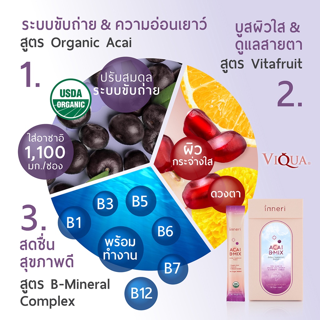 Inneri อินเนอริ อาซาอิ บี-มิกซ์ ผงอาซาอิพร้อมชง Acai B-Mix (14 Sachets x 9 g)