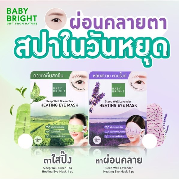 (6ชิ้น/กล่อง) Baby Bright เบบี้ไบร์ท มาสก์ตา สปาตาอุ่น กลิ่นชาเขียว / กลิ่นลาเวนเดอร์