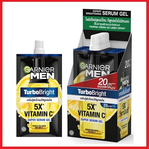 การ์นิเย่ เมน เทอร์โบ ไบรท์ ซูเปอร์ เซรั่ม เจล Garnier Men Turbo Brght Super Serum Gel 7ml x 6