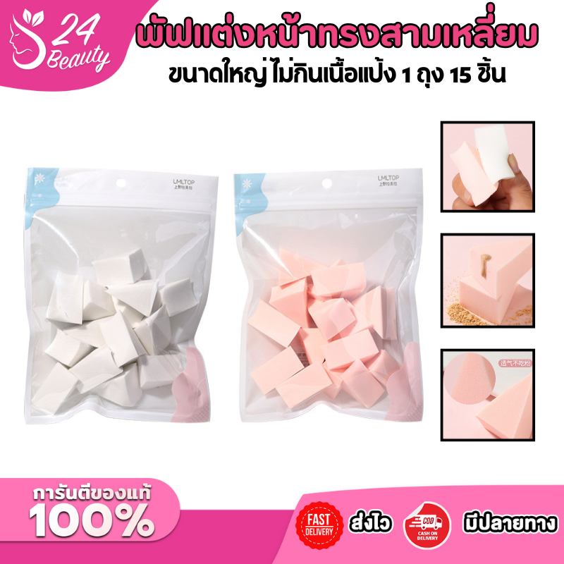 พัฟแต่งหน้าทรงสามเหลี่ยม ขนาดใหญ่แช่น้ำ Lamela บรรจุถุง 15 ชิ้น พัฟครีม BB บางเบา ไม่กินเนื้อครีม