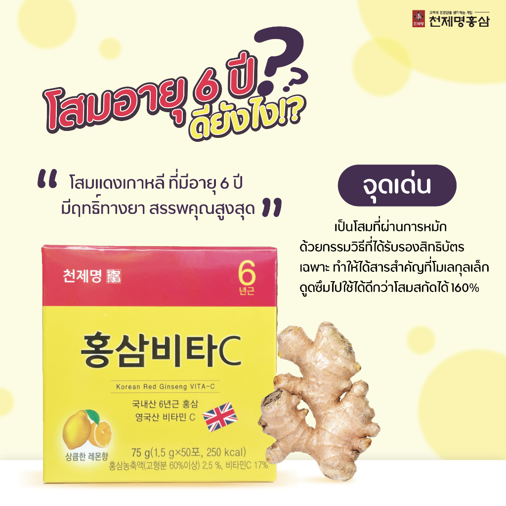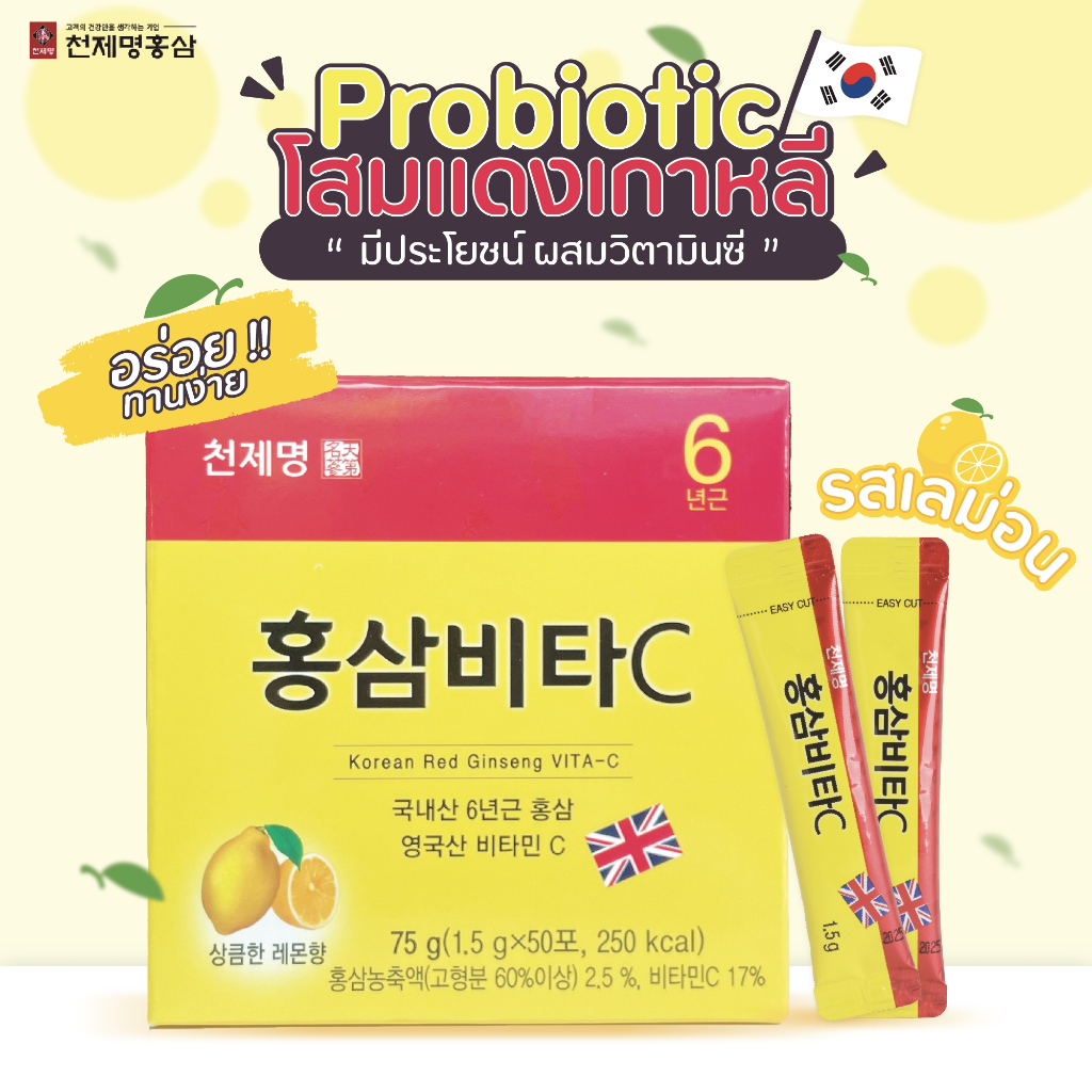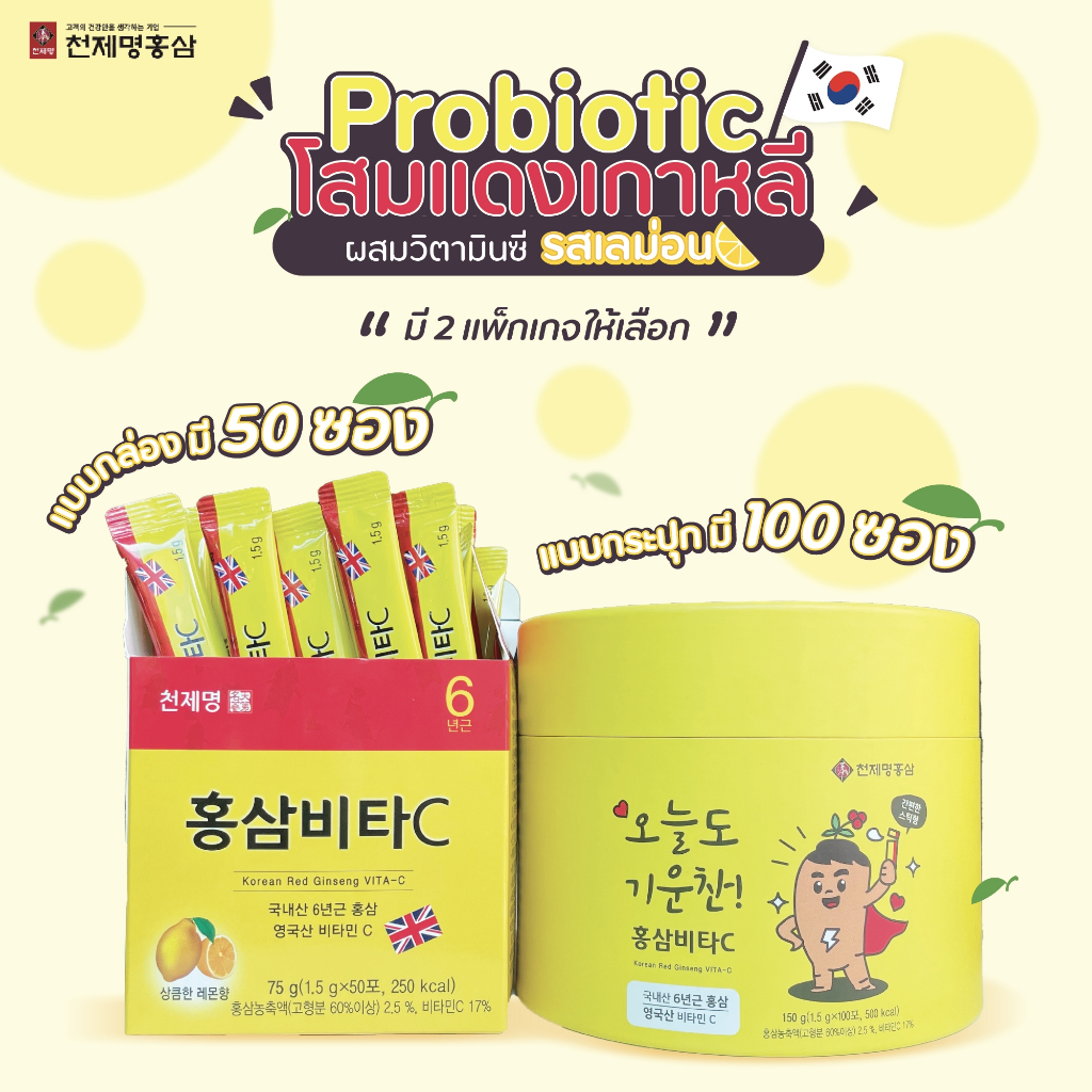 Korean Red Ginseng Vita-C โสมเกาหลี ไวต้าซี [50 ซอง/100 ซอง] [1 ชิ้น] โสมแดงเกาหลี 6 ปี รสเลม่อน อร่อย มีประโยชน์
