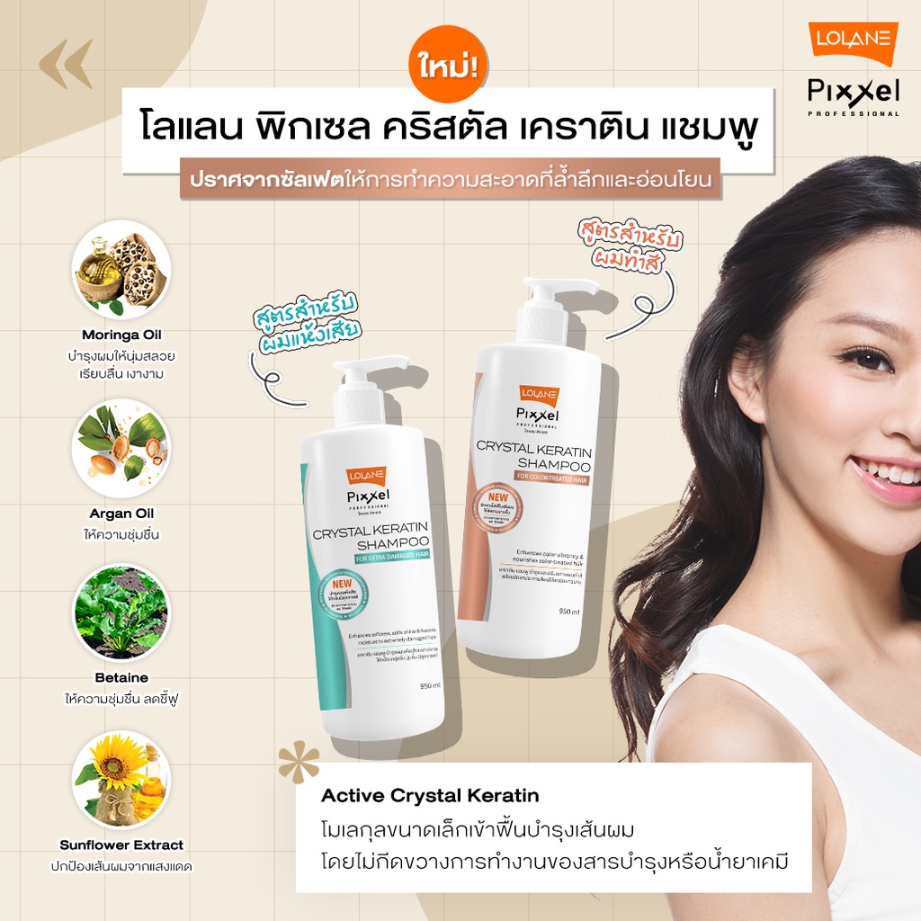 โลแลน พิกเซล คริสตัล เคราติน แชมพู สูตรบำรุงผมทำสี / ผมแห้งเสีย 950 มล.