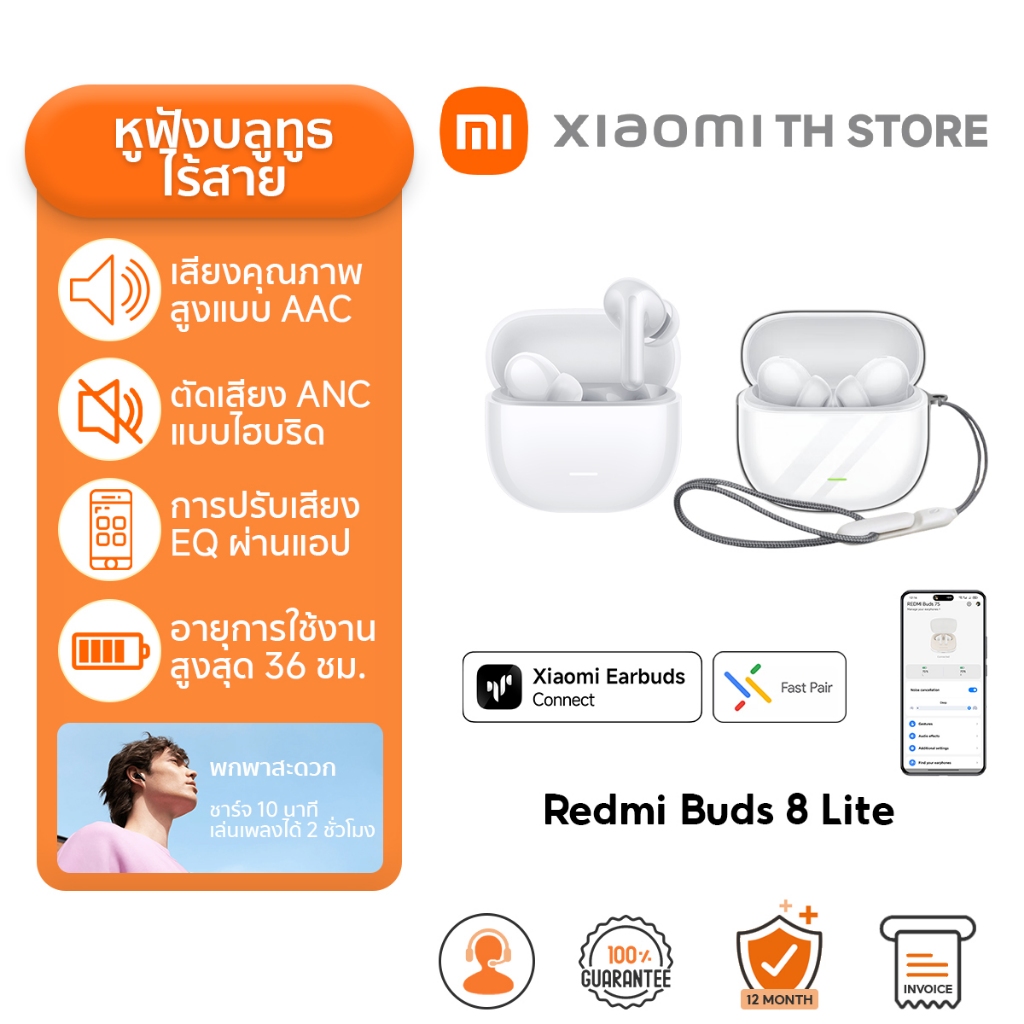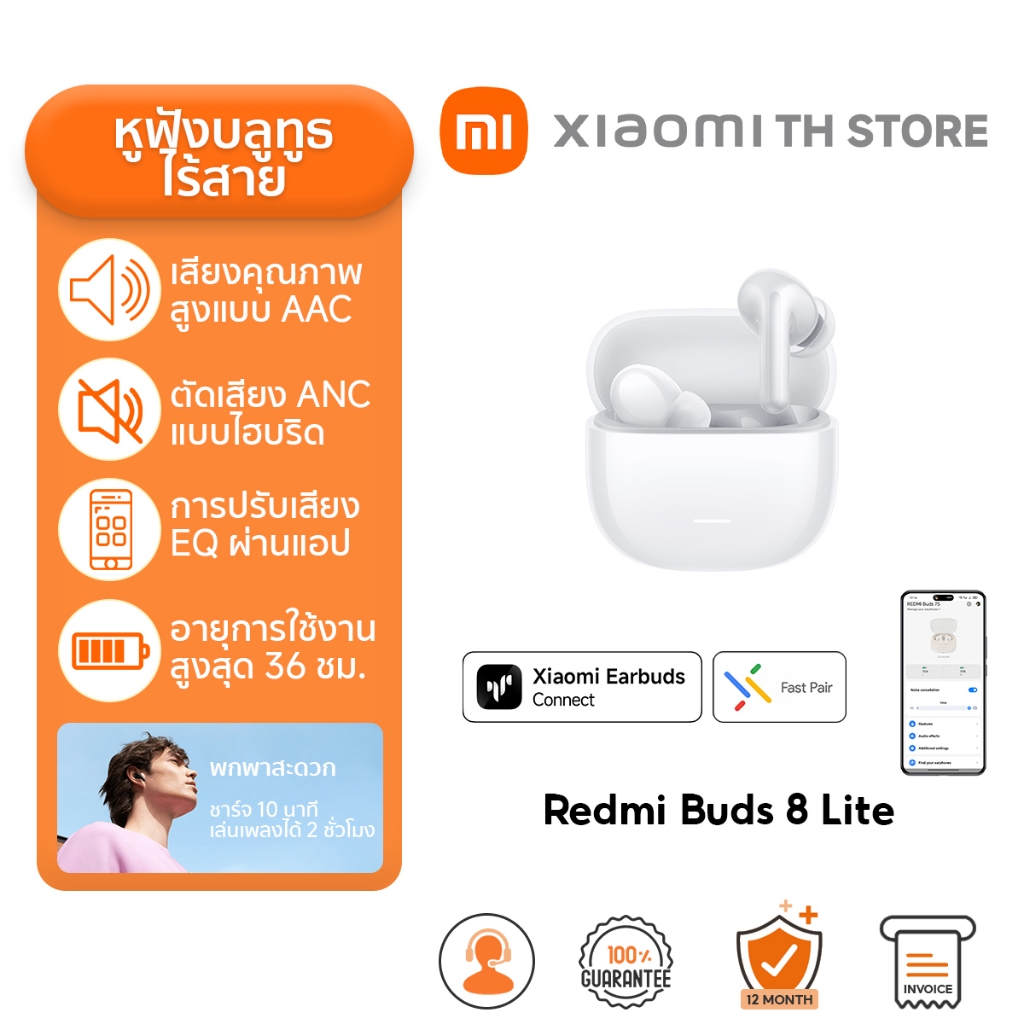 Xiaomi Redmi Buds 8 Lite หูฟังบลูทูธ I หูฟังไร้สาย ตัดเสียงรบกวน I แบตอึดยาวนาน | รองรับการถอดรหัสเสียงSBC และ AAC หูฟัง