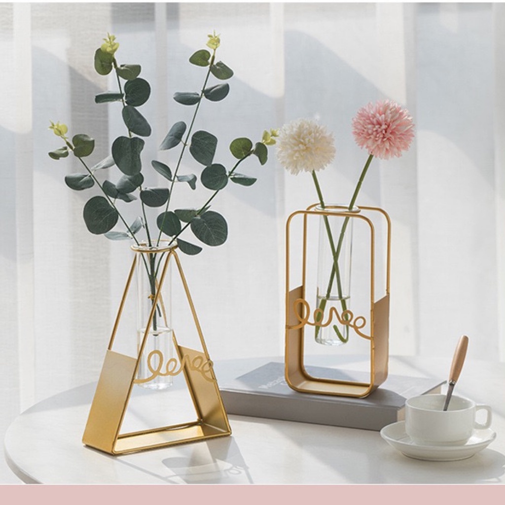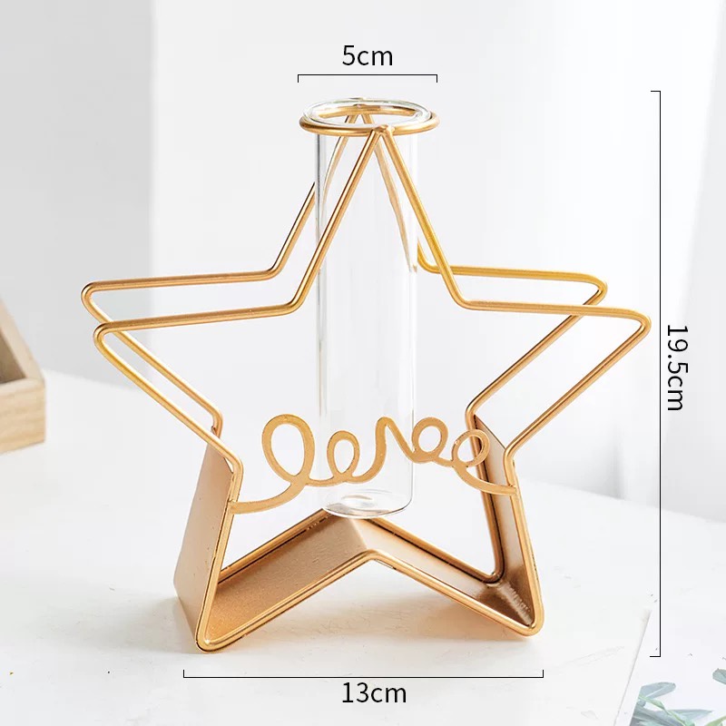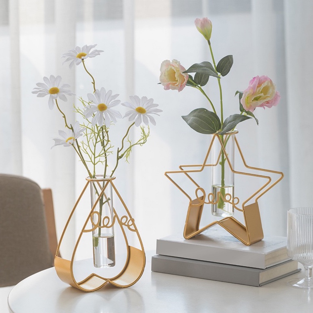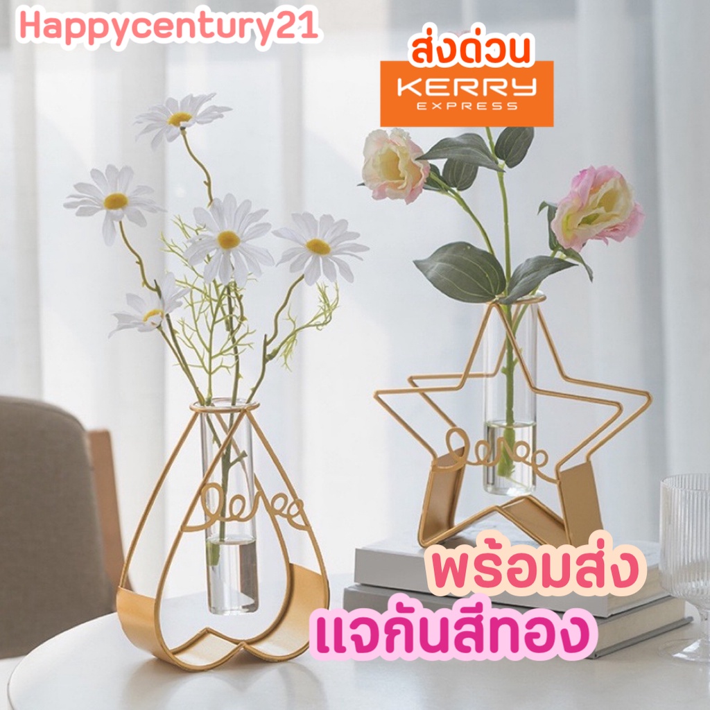 ส่งด่วน✅ แจกันดอกไม้สีทอง มินิมอล สไตล์เกาหลี รูปทรงหัวใจ ดาว ของตกแต่งห้อง