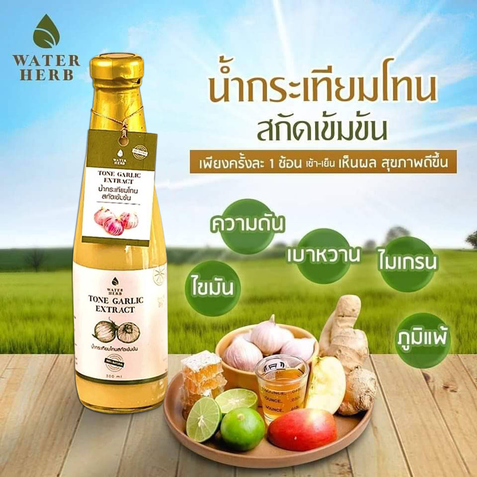 น้ำกระเทียมโทนสกัดเข้มข้น (WATER HERB) น้ำกระเทียมโทน ขิง มะนาว น้ำแอปเปิ้ลไซเดอร์ น้ำผึ้ง / 4ขวด