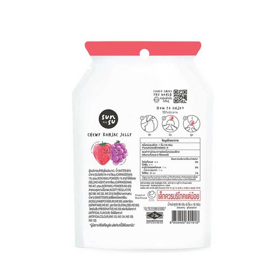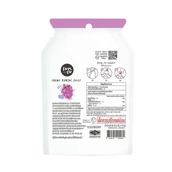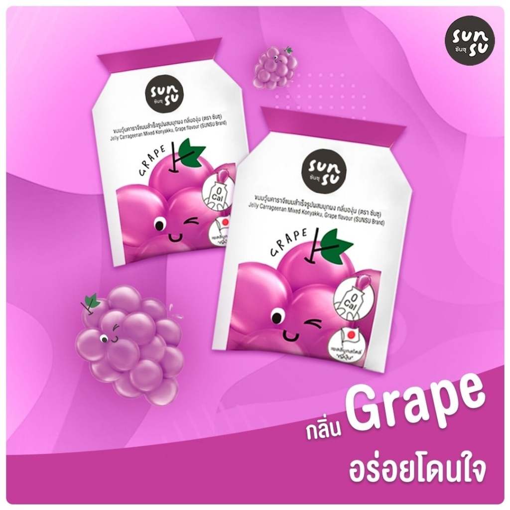ซันซุ เยลลี่ผสมบุกกลิ่นองุ่น & สตรอว์เบอร์รี่ 96 กรัม (แพ็ก 6 ชิ้น)/SunSu Chewy & Juicy Grape & Strawberry (6pcs)