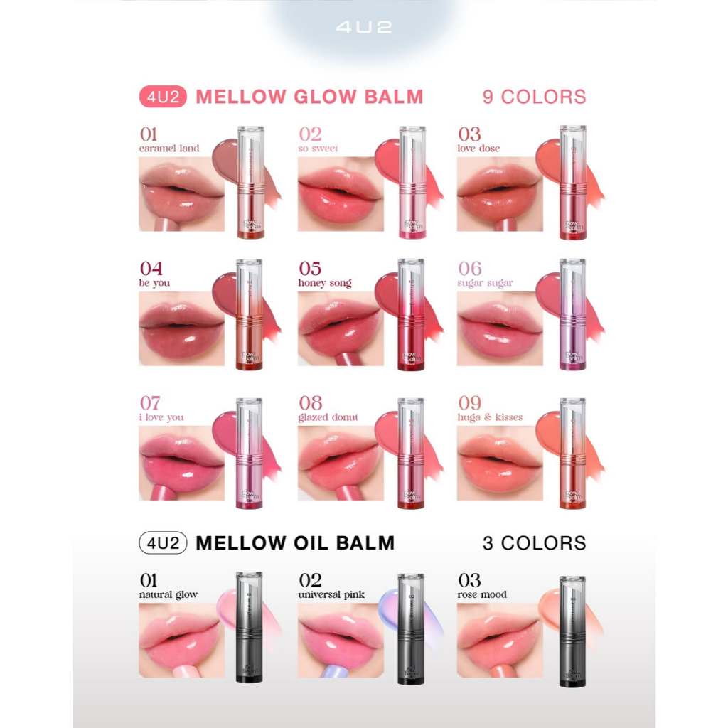 ถูก/แท้/มีไลฟ์ (2 ชิ้น 199.-) ลิป 4U2 Mellow Oil&Glow Balm บาล์มปากจือ ลิปบาล์ม บาล์มออยล์ ฉ่ำโกลว์ ฉ่ำวาว เปลี่ยนสีค่าp
