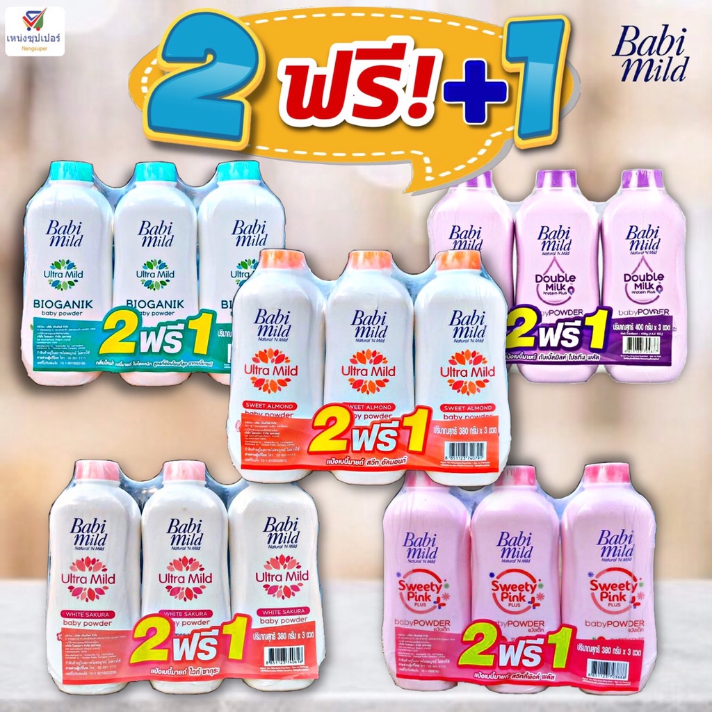 NS (แพค 3 ขวด) แป้งเบบี้มายด์ 350กรัม มี 5 กลิ่นให้เลือก (รุ่น 2 ฟรี 1)