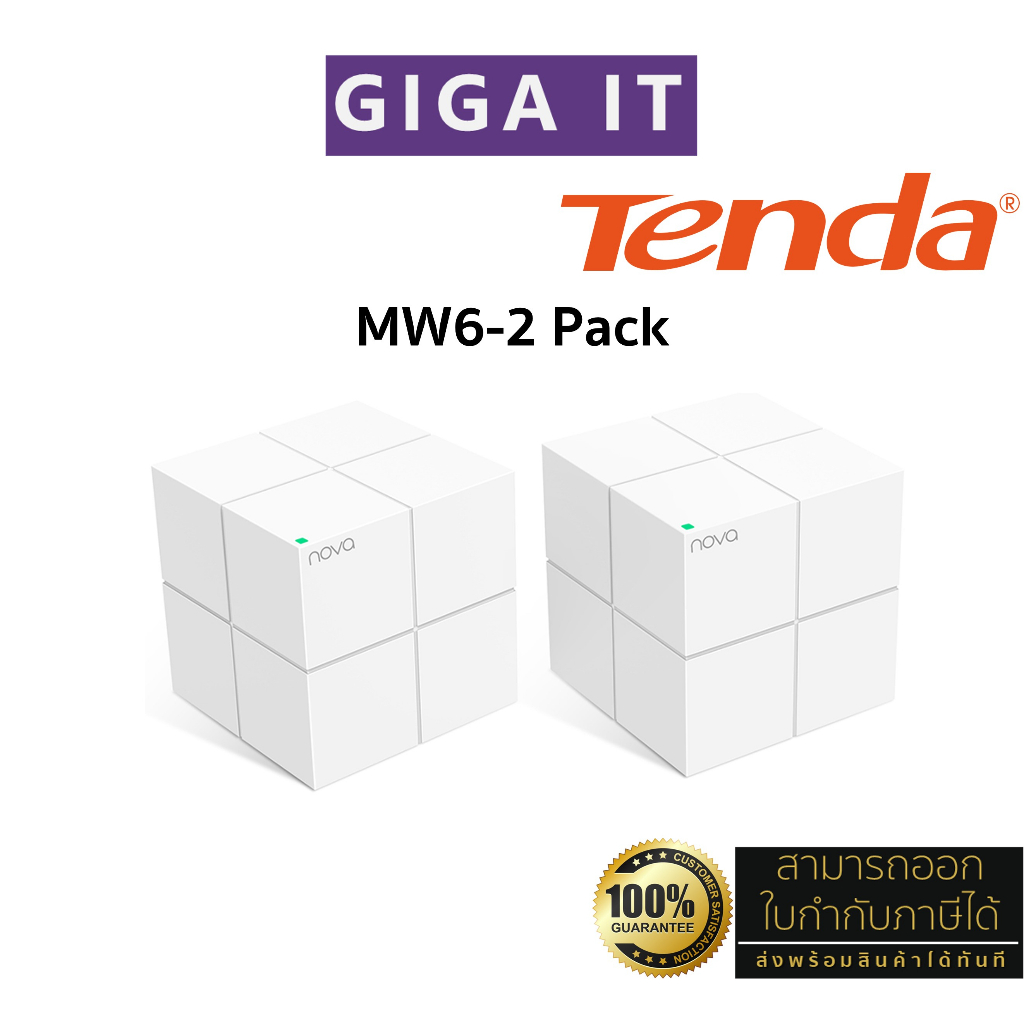 Tenda MW6-2 Pack AC1200 Whole-home Mesh WiFi System Pack2 - 2.4GHz, 5.0GHz, 2-Port 10/100/1000Mbps/Node ประกันศูนย์ 5 ปี