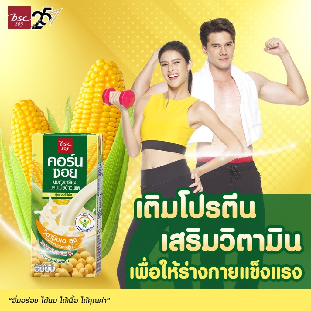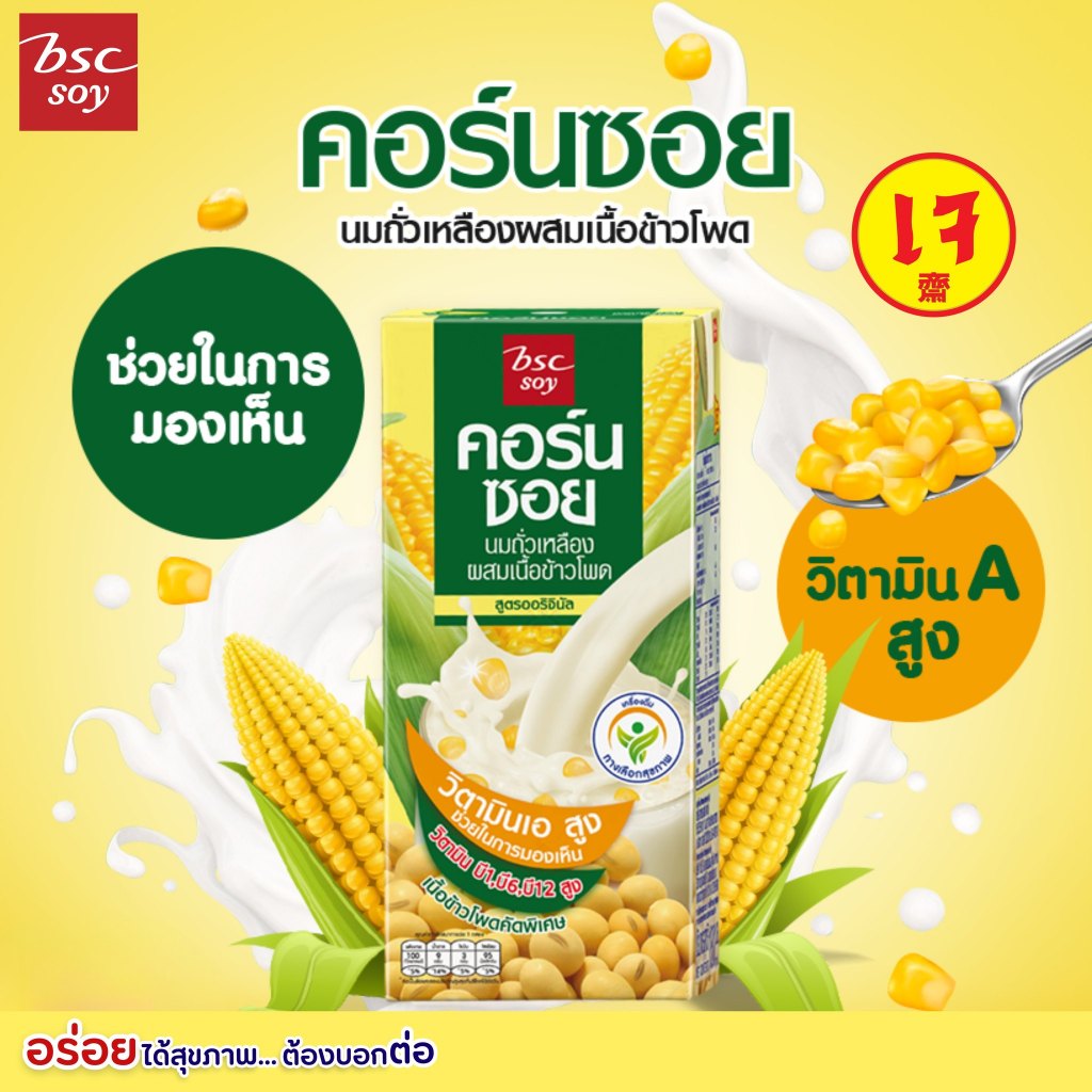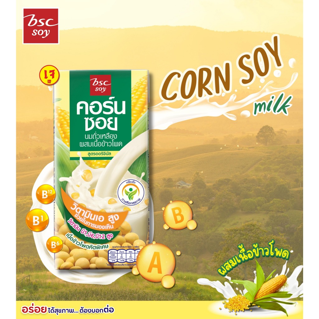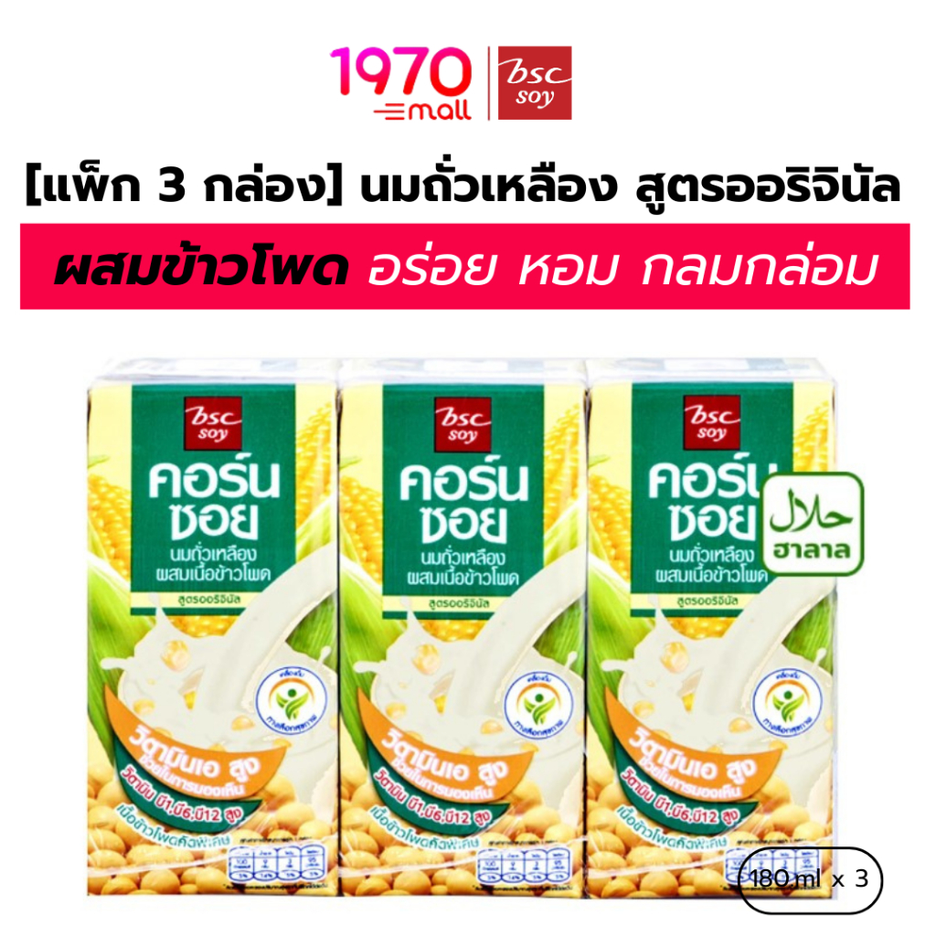 [แพ็ก 3 กล่อง] BSC SOY นมถั่วเหลือง สูตรออริจินัล ผสมข้าวโพด 180ml.