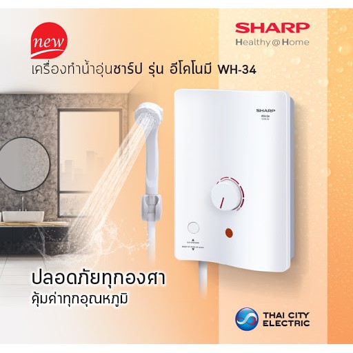 🔥🔥 SHARP เครื่องทำน้ำอุ่น WH-34 (3500วัตต์) หม้อต้มทองแดง มีปุ่มเช็ค ELB breaker ตัดกระแสไฟ รับประกันศูนย์หม้อต้ม5ปี