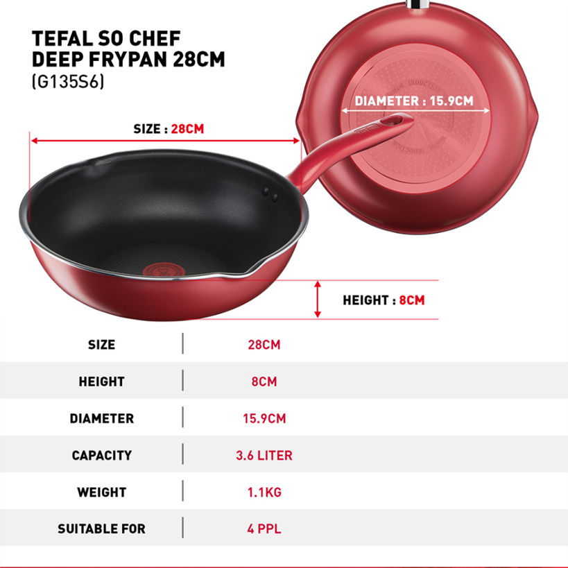 Tefal ชุดกระทะ So Chef รุ่น G135S295 2 ชิ้น ก้นอินดักชั่น กระทะก้นลึกขอบ 2 หยัก ขนาด 28 cm. และ กระทะก้นแบน ขนาด 24 cm.