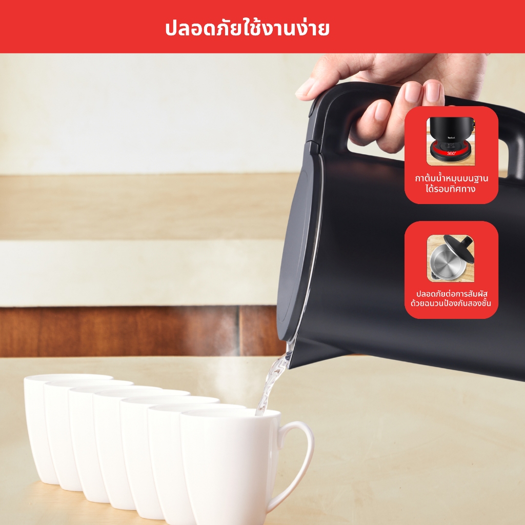 [Tefal ของแท้] กาต้มน้ำไฟฟ้า รุ่น KO1408E0 Thermo Protect 1500W ความจุ 1.5 ลิตร สีดำ รับประกันศูนย์ไทย