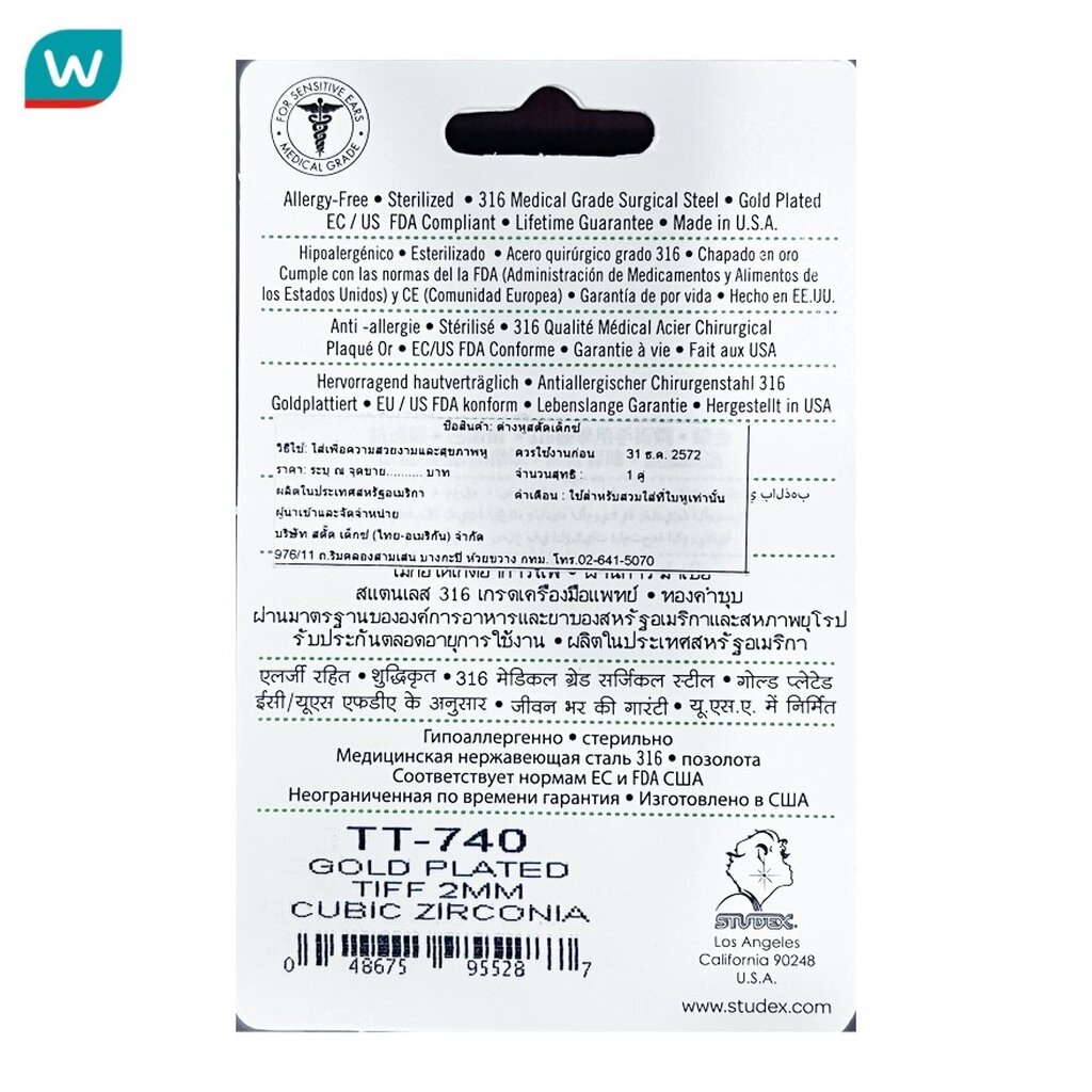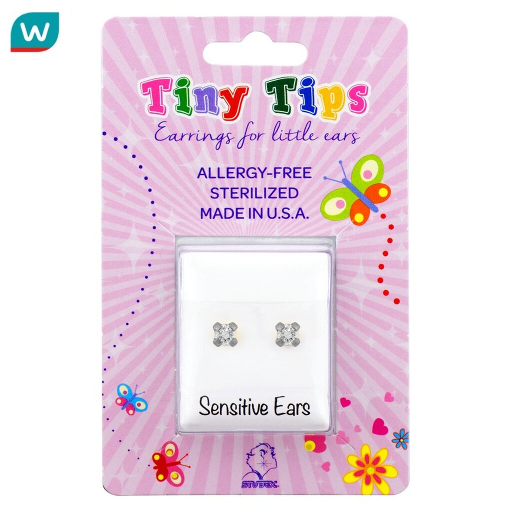 Studex สตั๊ดเด็กซ์ ไทนี่ ทิปส์ ต่างหูเด็ก สำหรับผิวแพ้ง่าย เงินแท้ 2มม คิวบิค เซอโคเนีย