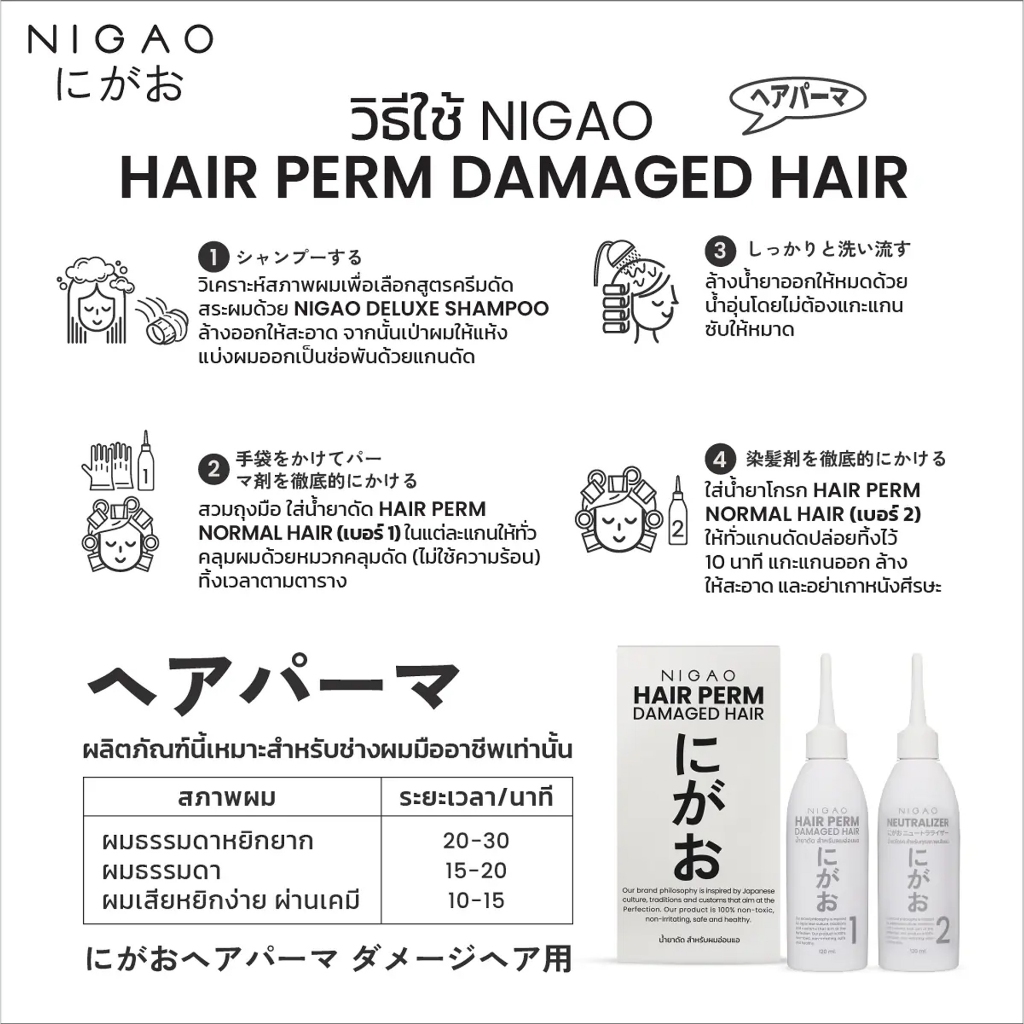 น้ำยาดัดผม นิกาโอะ แฮร์ เพิร์ม นอร์มอล/ แดเมจ แฮร์ ผมธรรมดา/ ผมอ่อนแอ Nigao Hair Perm Normal / Damage Hair
