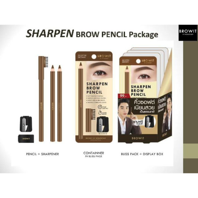 ดินสอเขียนคิ้วชนิดเหลา BROWIT บราวอิท Browit Sharpen Brow Pencil (ดินสอคิ้ว+กบเหลา)