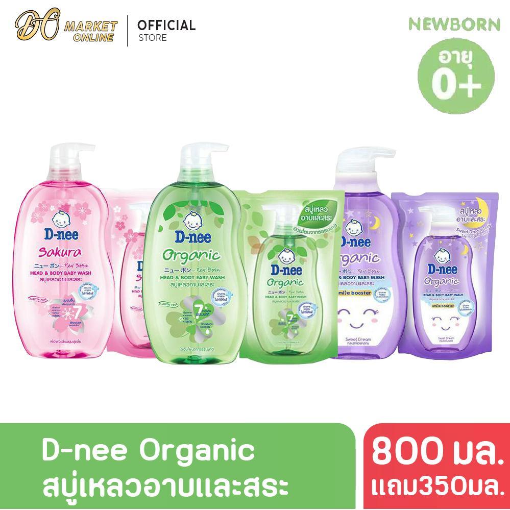 D-nee Head & Body Baby Wash Organic ดีนี่สบู่เหลวอาบและสระ 800ml. แถม 350มล