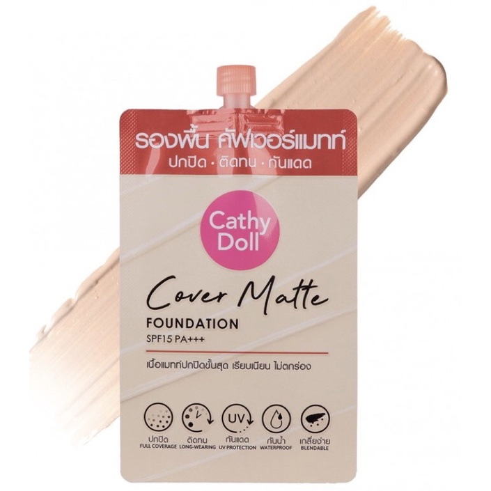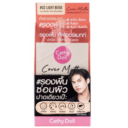 ครีมรองพื้นชนิดซอง CATHY DOLL COVER MATTE FOUNDATION SPF15 PA+++ ขนาด 6ml (#02 LIGHT BEIGE)