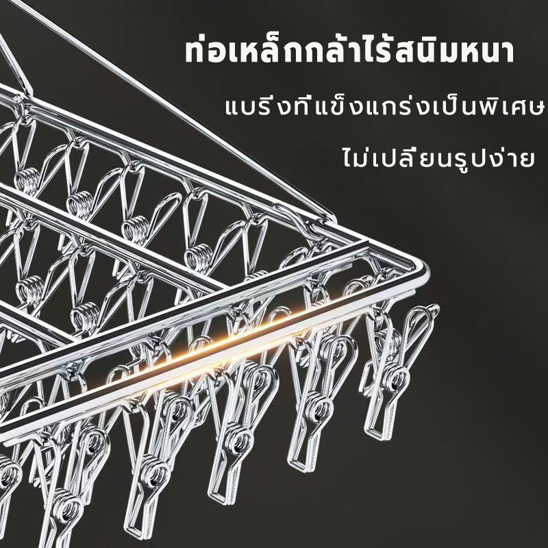 ราวตากผ้าสแตนเลส ชั้นวางถุงเท้าใช้ได้ทั้งถุงเท้า ชุดชั้นใน หมวก หมุนได้รอบ360องศา 20/30/40ที่หนีบ